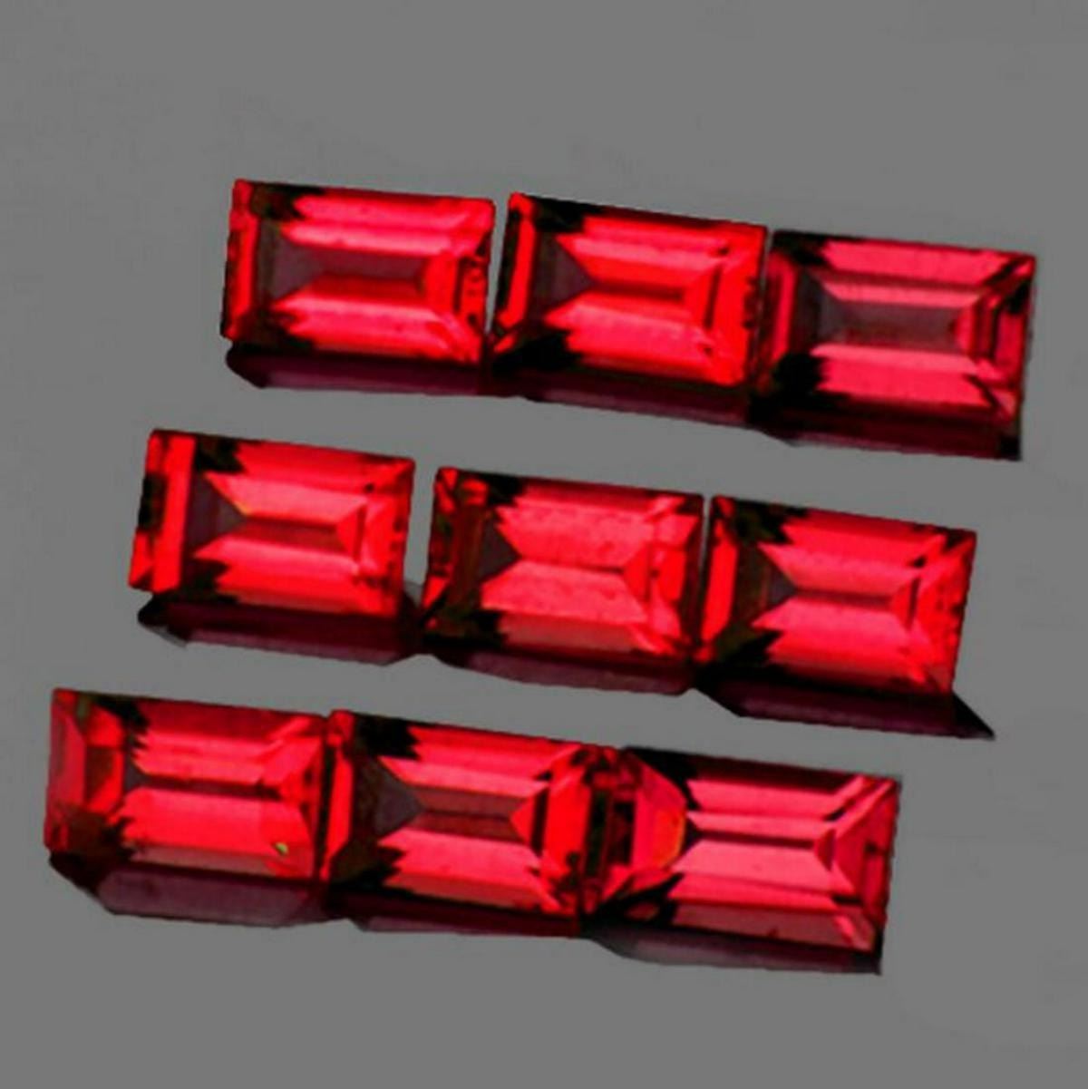 Natural Ruby (Earthly Mined)SIZE ( L x W x D ) : 4 x 2 mm;COLOR : Red AAA Color;SHAPE : Baguette Machine Cut;QUANTITY : 12 pieces;LUSTER : Extreme Brilliancy AAA+++CLARITY : Flawless-VVS;HARDNESS : 9;ORIGIN : Mozambique;