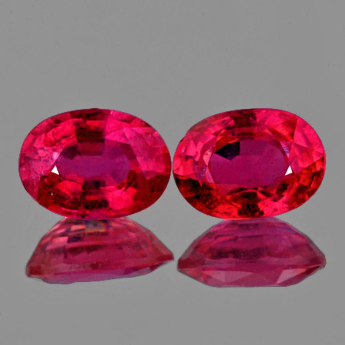 Natural Ruby; WEIGHT : 2.40 cts; SHAPE : Oval; SIZE ( L x W x D ) : 7.00 x 5.00 mm; QUANTITY : 2 pieces (Perfectly Matched Pair) COLOR : Red ; CLARITY : SI; ORIGIN : Mozambique ,Africa; HARDNESS : 9; LUSTER : Excellent!!! TREATMENT : Yes