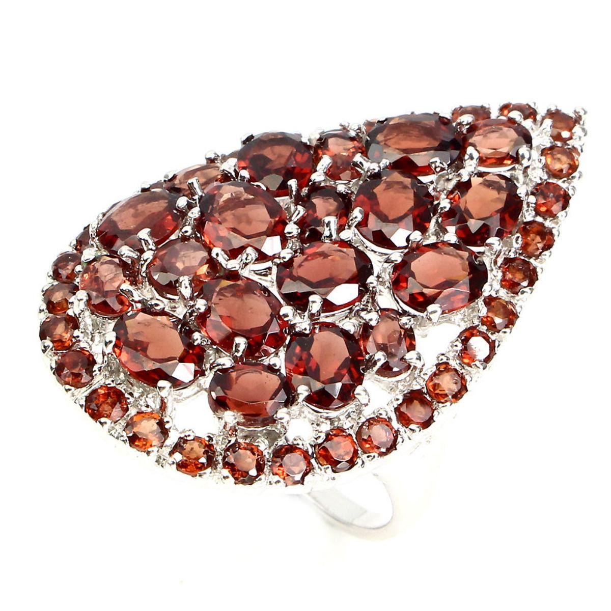 925 STERLING SILVER;PLATE-14K WHITE GOLD;RING SIZE-8.5;MAIN STONE-MOZAMBIQUE GARNET;OTHER GEMSTOTAL WEIGHT-35.18 CT (TOTAL WEIGHT OF SILVER + STONE)DIMENSION* STONE 2.0 TO 5.0 X 4.0 MM. * FACE RING 32.0 X 21.0 MM.MAIN STONE SHAPE-OVAL CUT;MAIN STONE COLOR-TOP RICH RED ORANGE;CLARITY/GRADE-IF TO VVS;LUSTER-GORGEOUS;TREATMENT-UNHEATED;ORIGIN-AFRICA;HARDNESS-7.0 - 7.5;