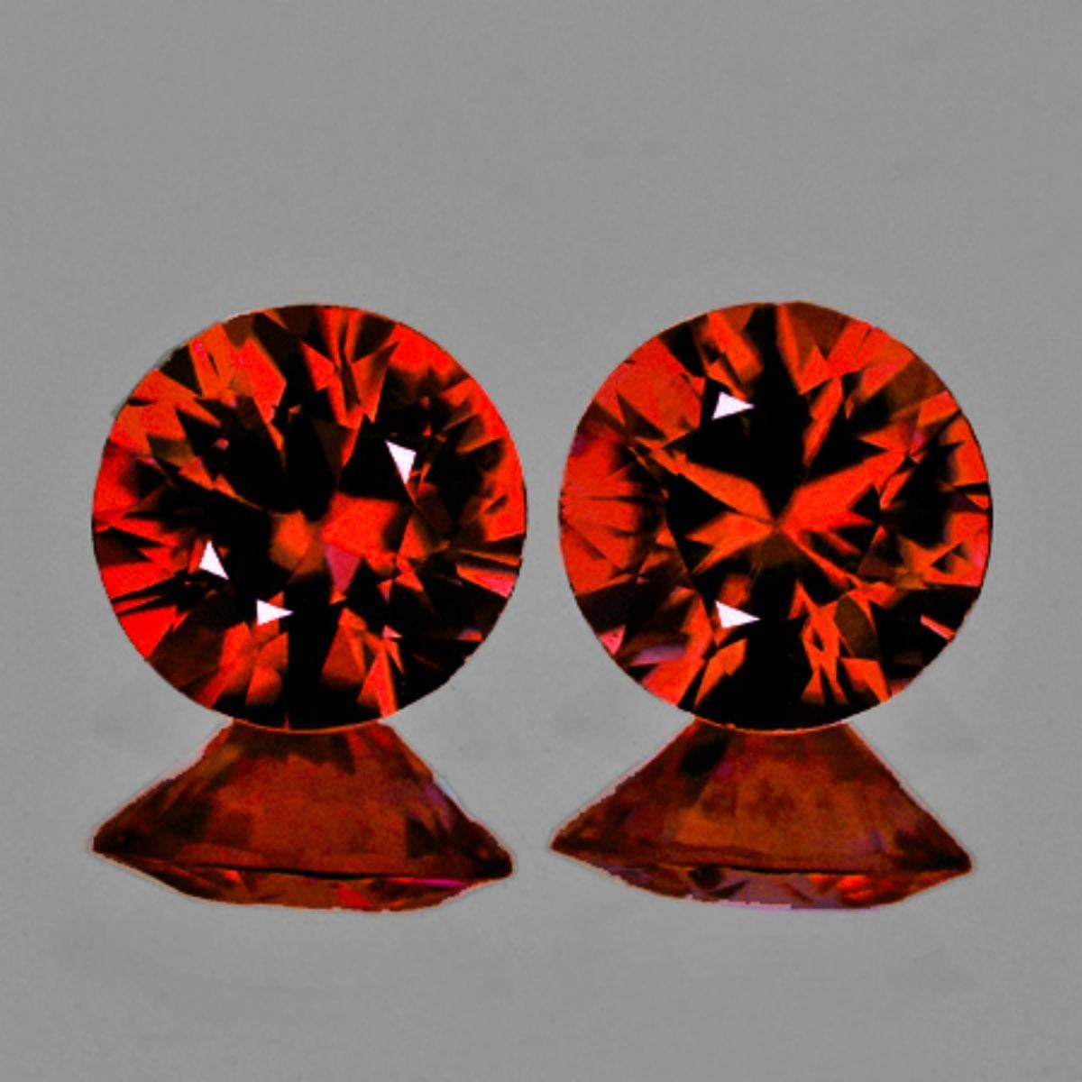 Natural Spessartite Garnet; WEIGHT : 1.10 cts; SHAPE : Round (Machine Brilliant Cut) SIZE ( L x W x D ) : 4.80 mm; QUANTITY : 2 pieces (Perfectly Matched Pair) COLOR : Mandarin Orange Red; CLARITY : Flawless-VVS; ORIGIN : Nigeria; HARDNESS : 7.5; LUSTER : Best AAA Fire!! TREATMENT : 100% Natural Unheated;