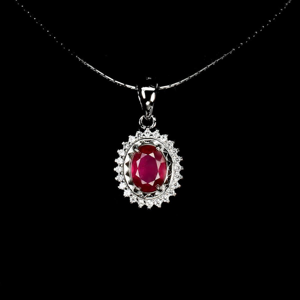 925 STERLING SILVER;PLATE-14K WHITE GOLD;LENGTH (INCHES)18;MAIN STONE-RUBY;TOTAL WEIGHT-4 GRAM (TOTAL WEIGHT OF SILVER + STONE)DIMENSION-* STONE 8.0 X 6.0 MM. * CZ 1.0 MM. * TOTAL LENGTH 18.0 INCHES.* STONES PART LENGTH 22.0 X 12.0 MM.;MAIN STONE SHAPE-OVAL CUT;MAIN STONE COLOR- BLOOD RED;TREATMENT--yes;ORIGIN-MADAGASCAR;HARDNESS-9.0;