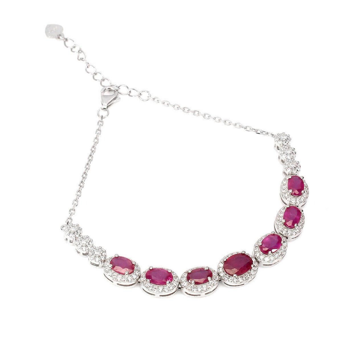 925 STERLING SILVER;PLATE-14K WHITE GOLD;LENGTH (INCHES)7;MAIN STONE-RUBY;TOTAL WEIGHT-7.42 GRAM (TOTAL WEIGHT OF SILVER + STONE)DIMENSION-* STONE 6.0 X 4.0 TO 7.0 X 5.0 MM.;* TOTAL LENGTH- 7.0 INCHES.;* FACE BRACELET- 90.0 X 8.0 MM.;MAIN STONE SHAPE-OVAL CUT;MAIN STONE COLOR- RED;TREATMENT-Yes;ORIGIN-MADAGASCAR;HARDNESS-9.0;