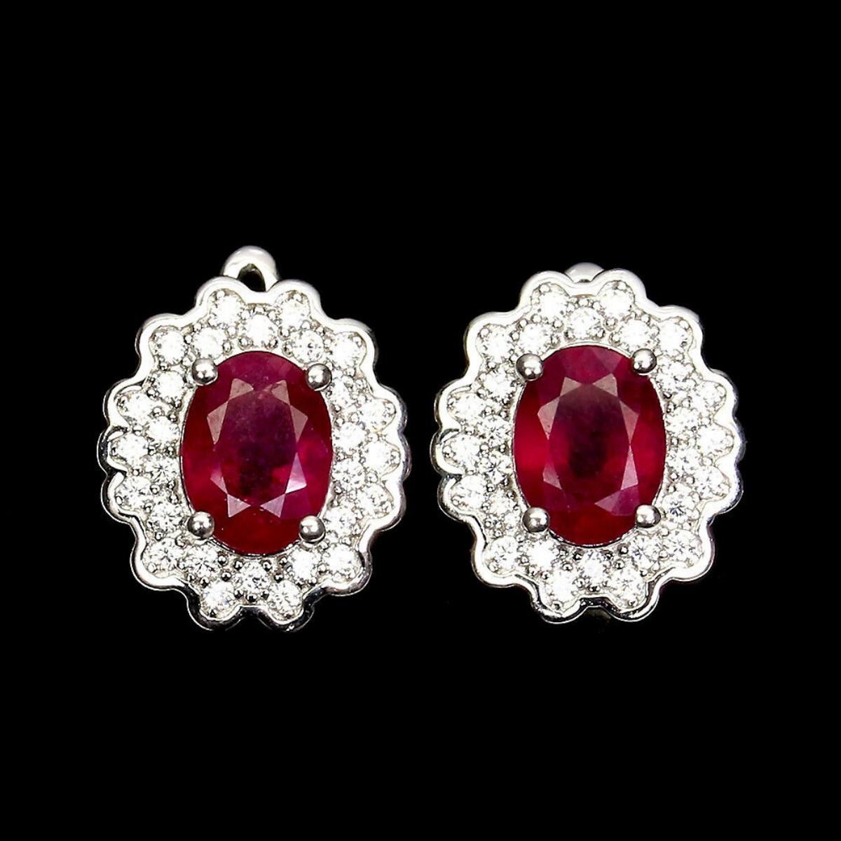 925 STERLING SILVER;PLATE-14K WHITE GOLD;MAIN STONE-RUBY;TOTAL WEIGHT-4.03 GRAM (TOTAL WEIGHT OF SILVER + STONE);DIMENSION-* STONE 8.0 X 6.0 MM.* FACE EARRINGS 14.0 X 12.0 MM.;MAIN STONE SHAPE-OVAL CUT;MAIN STONE COLOR-BLOOD RED;TREATMENT-YES;ORIGIN-MADAGASCAR;HARDNESS-9;