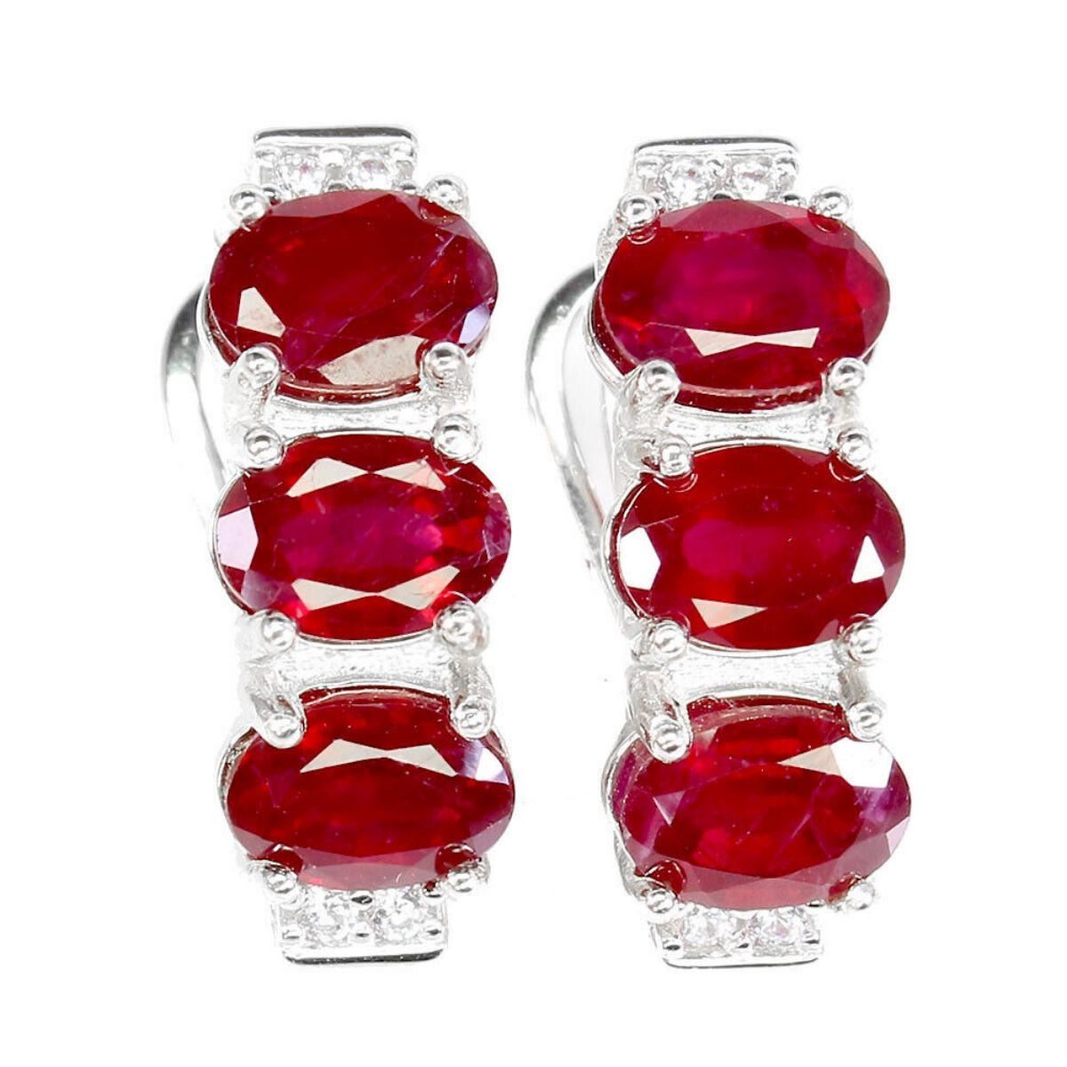 925 STERLING SILVER;PLATE-14K WHITE GOLD;MAIN STONE-RUBY;TOTAL WEIGHT-6.32 GRAM (TOTAL WEIGHT OF SILVER + STONE)DIMENSION-* STONE 7.0 X 5.0 MM.;* FACE EARRINGS- 20.0 X 7.0 MM.;MAIN STONE SHAPE-OVAL CUT;MAIN STONE COLOR- BLOOD RED;TREATMENT-Yes;ORIGIN-MADAGASCAR;HARDNESS-9.0;