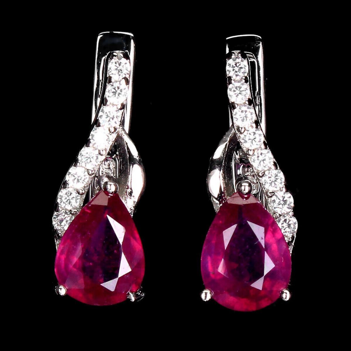 925 STERLING SILVER;PLATE-14K WHITE GOLD;MAIN STONE-RUBY;TOTAL WEIGHT-4.85 GRAM (TOTAL WEIGHT OF SILVER + STONE)DIMENSION-* STONE 8.0 X 6.0 MM. * CZ 1.5 MM. * FACE EARRINGS 17.0 X 6.0 MM.;MAIN STONE SHAPE-PEAR CUT;MAIN STONE COLOR- BLOOD RED;TREATMENT- Yes;ORIGIN-MADAGASCAR;HARDNESS-9;
