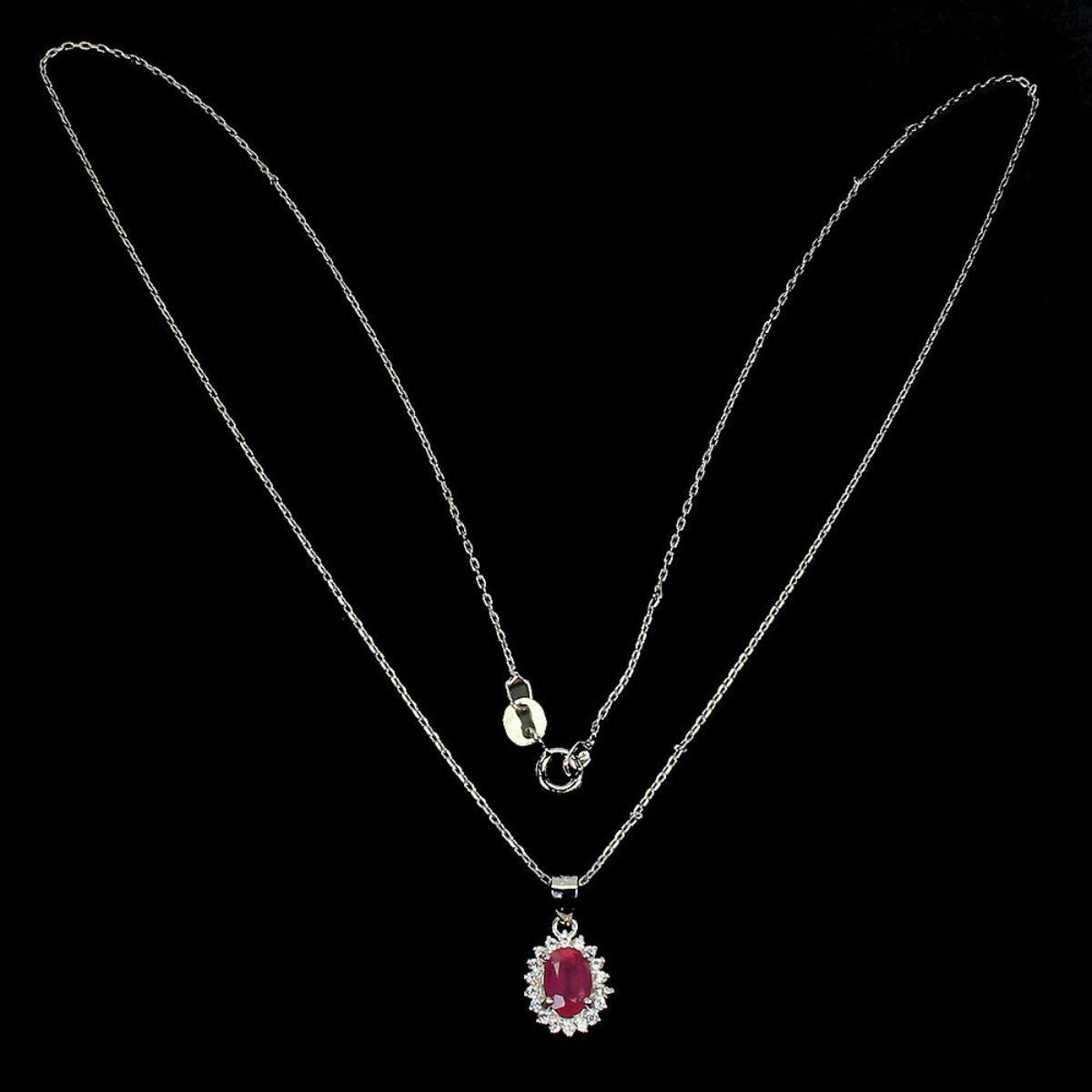 925 STERLING SILVER;PLATE-14K WHITE GOLD;LENGTH (INCHES)18;MAIN STONE-RUBY;TOTAL WEIGHT-2.18 GRAM (TOTAL WEIGHT OF SILVER + STONE)DIMENSION-* STONE 7.0 X 5.0 MM. * CZ 1.0 MM. * TOTAL LENGTH 18.0 INCHES.* STONES PART LENGTH 16.0 X 9.0 MM.;MAIN STONE SHAPE-OVAL CUT;MAIN STONE COLOR- BLOOD RED;TREATMENT-Yes;ORIGIN-MADAGASCAR;HARDNESS-9;