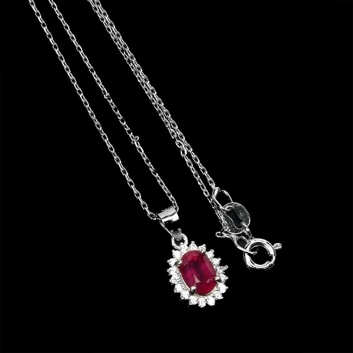 925 STERLING SILVER;PLATE-14K WHITE GOLD;LENGTH (INCHES)18;MAIN STONE-RUBY;TOTAL WEIGHT-2.18 GRAM (TOTAL WEIGHT OF SILVER + STONE)DIMENSION-* STONE 7.0 X 5.0 MM. * CZ 1.0 MM. * TOTAL LENGTH 18.0 INCHES.* STONES PART LENGTH 16.0 X 9.0 MM.;MAIN STONE SHAPE-OVAL CUT;MAIN STONE COLOR- BLOOD RED;TREATMENT-Yes;ORIGIN-MADAGASCAR;HARDNESS-9;