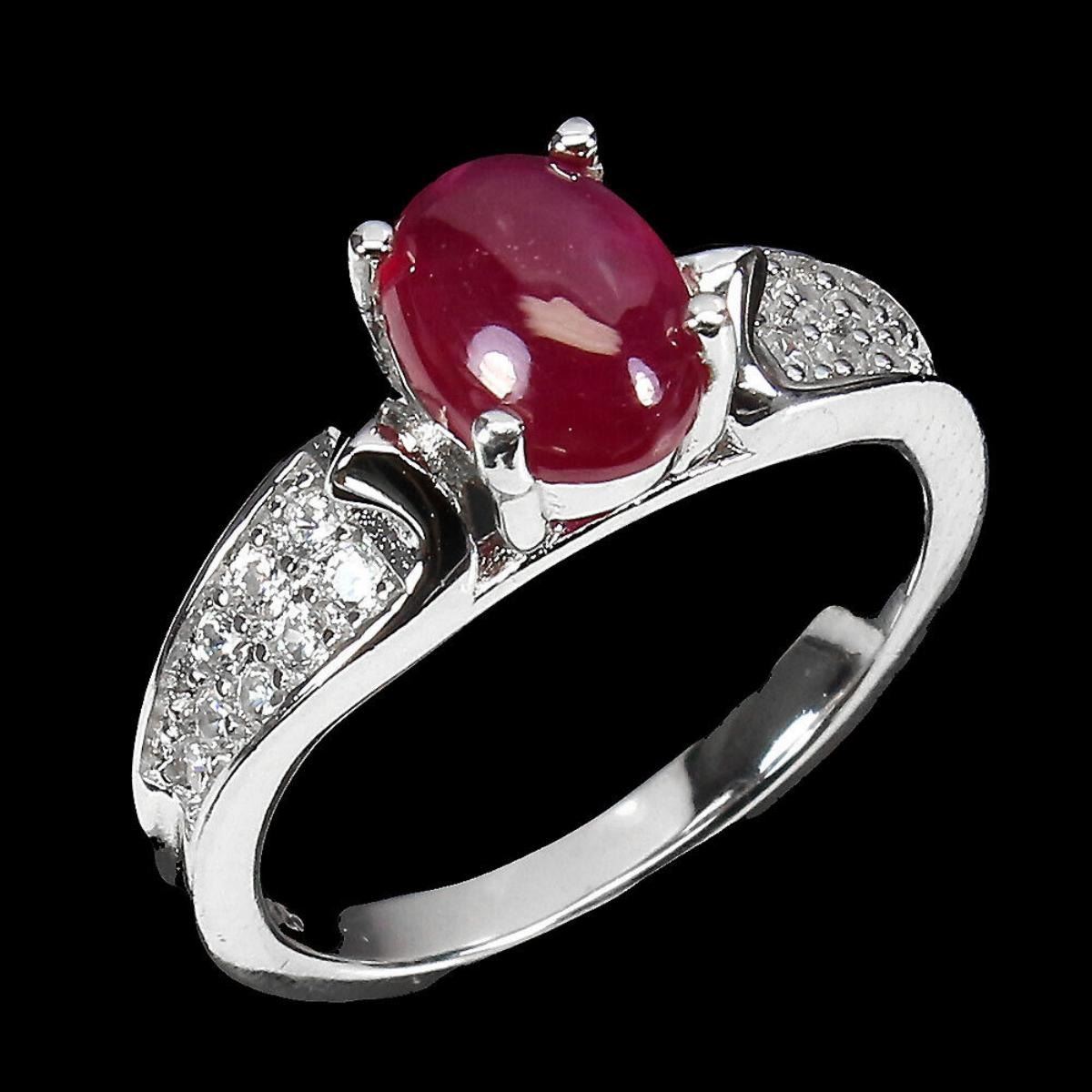 925 STERLING SILVER;PLATE-14K WHITE GOLD;RING SIZE-6.5(RESIZABLE);MAIN STONE-RUBY;TOTAL WEIGHT-3.78 GRAM (TOTAL WEIGHT OF SILVER + STONE);DIMENSION-* STONE 8.0 X 6.0 MM. * RING SIZE 6.5 * FACE RING 20.0 X 8.0 MM.;MAIN STONE SHAPE-OVAL CABOCHON;MAIN STONE COLOR-RED;TREATMENT-YES;ORIGIN-MADAGASCAR;HARDNESS-9;