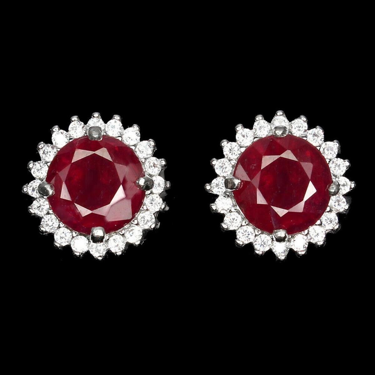 925 STERLING SILVER;PLATE-14K WHITE GOLD;MAIN STONE-RUBY;TOTAL WEIGHT-3.13 GRAM (TOTAL WEIGHT OF SILVER + STONE)DIMENSION-* STONE 7.0 MM. * CZ 1.0 MM. * FACE EARRINGS 10.0 X 10.0 MM.;MAIN STONE SHAPE-ROUND CUT;MAIN STONE COLOR-TOP BLOOD RED;TREATMENT- Yes;ORIGINMADAGASCAR;HARDNESS9;