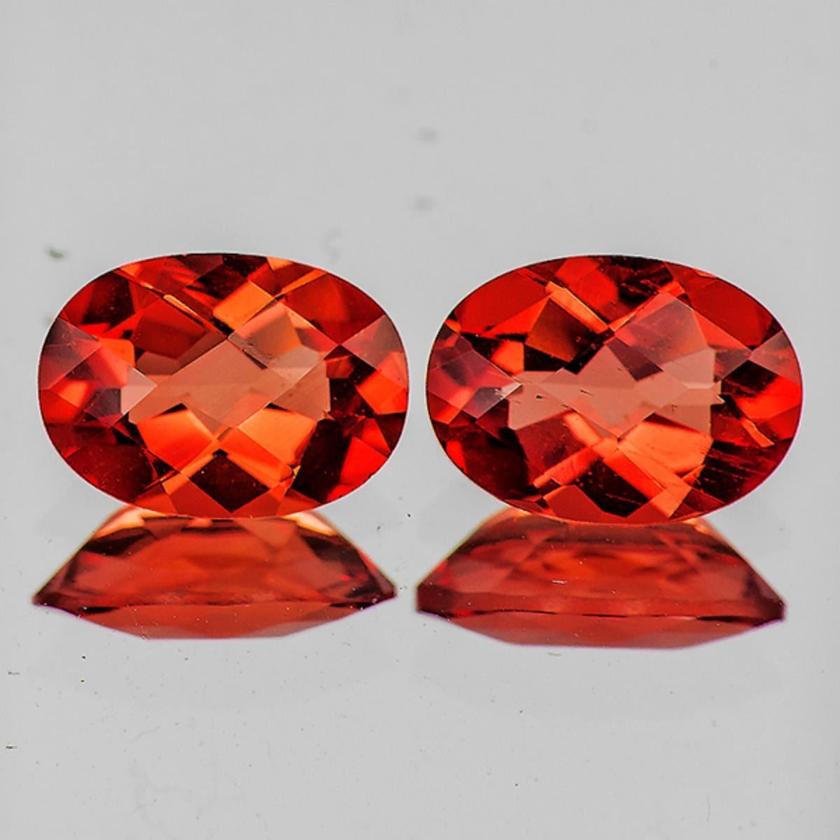 Natural-colored Cu-bearing; AndesineSIZE ( L x W x D ) : 7 x 5 mm;COLOR : Reddish Orange Intense AAA;SHAPE : Oval Checker;QUANTITY : 2 pieces;LUSTER : Excellent;CLARITY : Flawless-VVS;HARDNESS : 6-6.5;ORIGIN : Congo-Africa; TREATMENT : Unheated/Untreated 100% Natural;