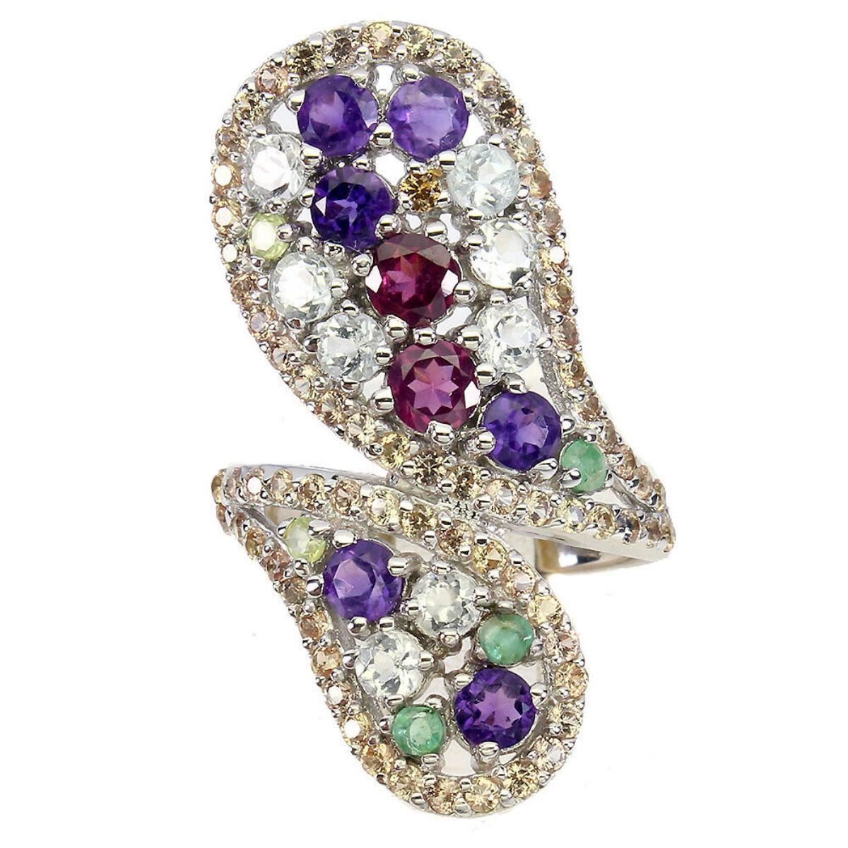 925 STERLING SILVER;PLATE-14K WHITE GOLD;RING SIZE-7.5(RESIZABLE);MAIN STONE-RHODOLITE GARNET;OTHER GEMS-AMETHYST, AQUAMARINE, EMERALD, SAPPHIRE;TOTAL WEIGHT-6.11 GRAM (TOTAL WEIGHT OF SILVER + STONE);DIMENSION-* STONE 1.5 TO 4.0 MM. * RING SIZE 7.5 * FACE RING 35.0 X 20.0 MM.;MAIN STONE SHAPE-ROUND ;MAIN STONE COLOR-PINK RASPBERRY;CLARITY/GRADE-IF TO VVS;TREATMENT-UNHEATED;ORIGIN-AFRICA;HARDNESS-7.0 - 7.5;