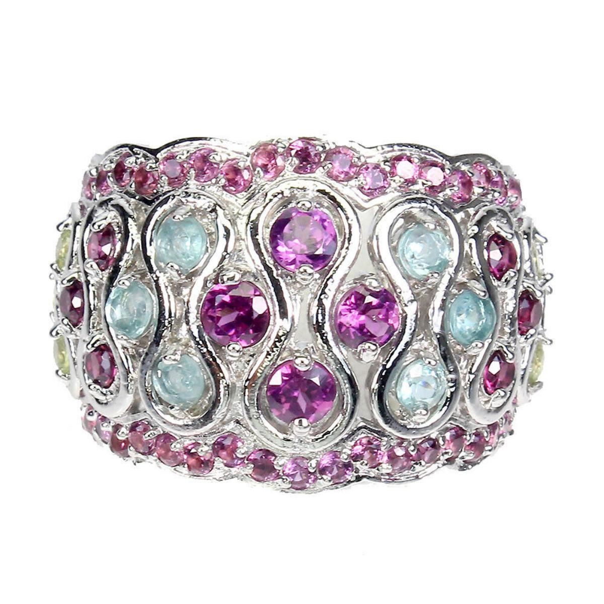 925 STERLING SILVER;PLATE-14K WHITE GOLD;RING SIZE/Resizeable-8;MAIN STONE-RHODOLITE GARNET;OTHER GEMS-APATITE, SAPPHIRE;TOTAL WEIGHT-6.43 GRAM (TOTAL WEIGHT OF SILVER + STONE)DIMENSION-* STONE 1.5 TO 3.0 MM. * RING SIZE 8.0 * FACE RING 24.0 X 16.0 MM.;MAIN STONE SHAPE-ROUND CUT;MAIN STONE COLOR- PINK RASPBERRY;CLARITY/GRADE-IF TO VVS;TREATMENT-UNHEATED;ORIGIN-AFRICA;HARDNESS-7.0 - 7.5;
