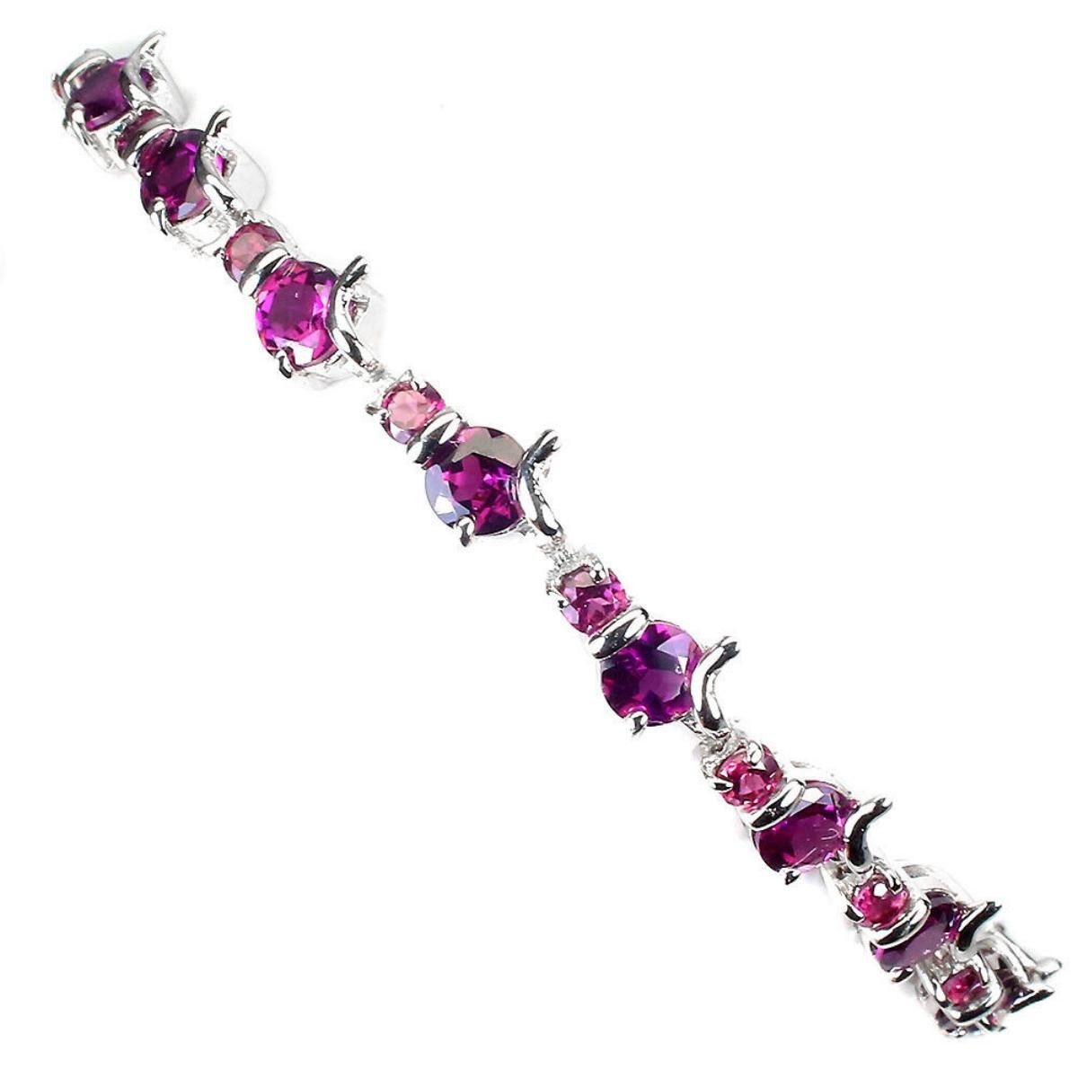 925 STERLING SILVER;PLATE-14K WHITE GOLD;LENGTH (INCHES)-7.5;MAIN STONE-RHODOLITE GARNET;TOTAL WEIGHT-11.16 GRAM (TOTAL WEIGHT OF SILVER + STONE);DIMENSION-* STONE 2.5 TO 4.5 MM.* TOTAL LENGTH 7.5 INCHES.* FACE BRACELET 170.0 X 6.0 MM.;MAIN STONE SHAPE-ROUND ;MAIN STONE COLOR-PINK RASPBERRY;CLARITY/GRADE-IF TO VVS;TREATMENT-UNHEATED;ORIGIN-AFRICA;HARDNESS-7.0 - 7.5;