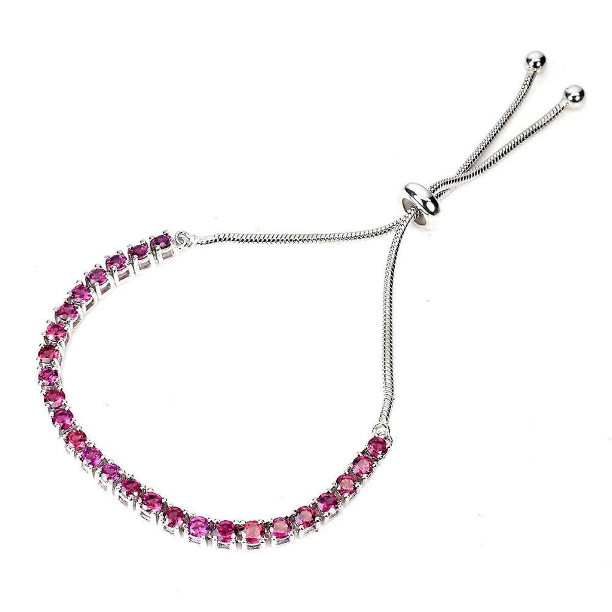 925 STERLING SILVER;PLATE-14K WHITE GOLD;LENGTH (INCHES)-9;MAIN STONE-RHODOLITE GARNET;TOTAL WEIGHT-8.62 GRAM (TOTAL WEIGHT OF SILVER + STONE);DIMENSION -* STONE 3.0 MM.* TOTAL LENGTH 9.0 INCHES.* FACE BRACELET 95.0 X 4.0 MM.;MAIN STONE SHAPE -ROUND ;MAIN STONE COLOR- PINK RASPBERRY;CLARITY/GRADE- IF TO VVS;TREATMENT-UNHEATED;ORIGIN-AFRICA;HARDNESS- 7.0 - 7.5;