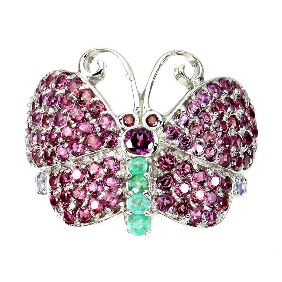 925 STERLING SILVER;PLATE-14K WHITE GOLD;RING SIZE/Resizeable-8.5;MAIN STONE-RHODOLITE GARNET;OTHER GEMS-EMERALD;TOTAL WEIGHT-7.83 GRAM (TOTAL WEIGHT OF SILVER + STONE)DIMENSION* STONE 1.0 TO 2.0 MM. * RING SIZE 8.5 * FACE RING 23.0 X 20.0 MM.;MAIN STONE SHAPE-ROUND CUT;MAIN STONE COLOR- PINK RASPBERRY;CLARITY/GRADE-IF TO VVS;TREATMENT-UNHEATED;ORIGIN-AFRICA/Colombia