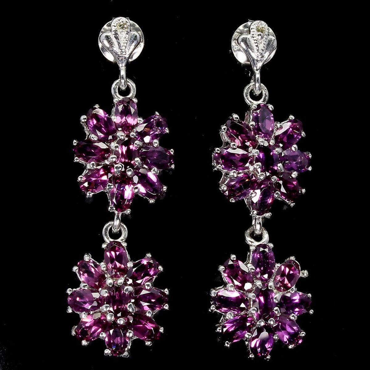 925 STERLING SILVER;PLATE-14K WHITE GOLD;MAIN STONE-RHODOLITE GARNET;TOTAL WEIGHT-9.86 GRAM (TOTAL WEIGHT OF SILVER + STONE)DIMENSION-* STONE 1.0 TO 5.0 X 3.0 MM. * FACE EARRINGS 44.0 X 13.0 MM.;MAIN STONE SHAPE-OVAL CUT;MAIN STONE COLOR-TOP RICH PINK RASPBERRY;CLARITY/GRADE-IF TO VVS;LUSTER-STUNNING;TREATMENT-UNHEATED;ORIGIN-AFRICA;HARDNESS-7.0 - 7.5;