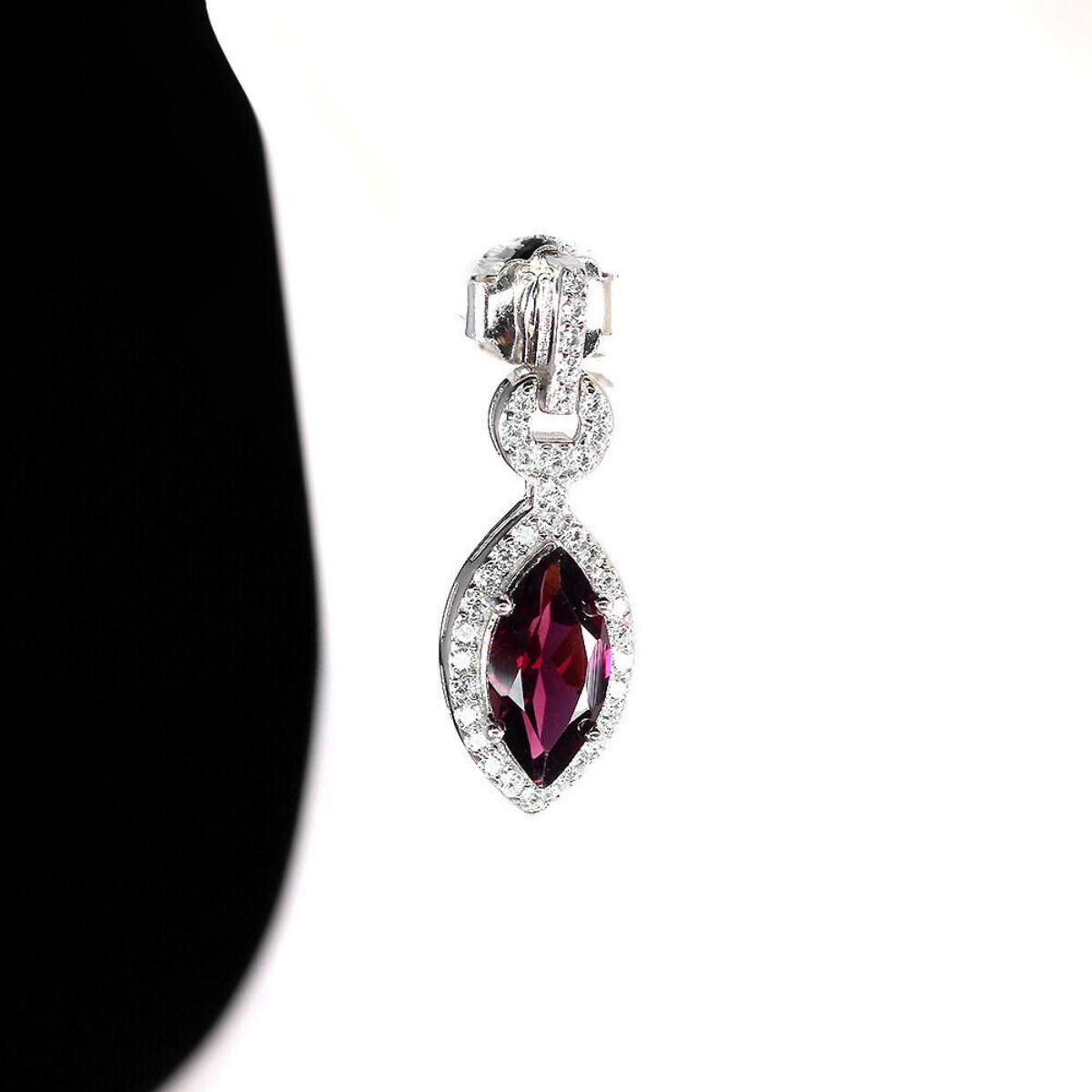 925 STERLING SILVER;PLATE-14K WHITE GOLD;MAIN STONE-RHODOLITE GARNET;TOTAL WEIGHT-3.1 GRAM (TOTAL WEIGHT OF SILVER + STONE);DIMENSION-* STONE 10.0 X 5.0 MM. * FACE EARRINGS 22.0 X 8.0 MM.;MAIN STONE SHAPE-MARQUISE;MAIN STONE COLOR-PINK RASPBERRY;CLARITY/GRADE-IF TO VVS;TREATMENT-UNHEATED;ORIGIN-AFRICA;