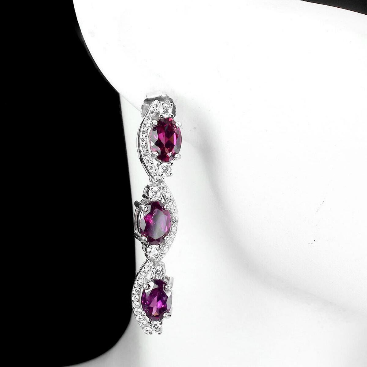 925 STERLING SILVER;PLATE-14K WHITE GOLD;MAIN STONE-RHODOLITE GARNET;TOTAL WEIGHT-6.3 GRAM (TOTAL WEIGHT OF SILVER + STONE)DIMENSION-* STONE 7.0 X 5.0 MM.* FACE EARRINGS- 38.0 X 7.0 MM.;MAIN STONE SHAPE-OVAL CUT;MAIN STONE COLOR- PINK RASPBERRY;CLARITY/GRADE-IF TO VVS;TREATMENT-UNHEATED;ORIGIN-AFRICA;HARDNESS-7.0 - 7.5;