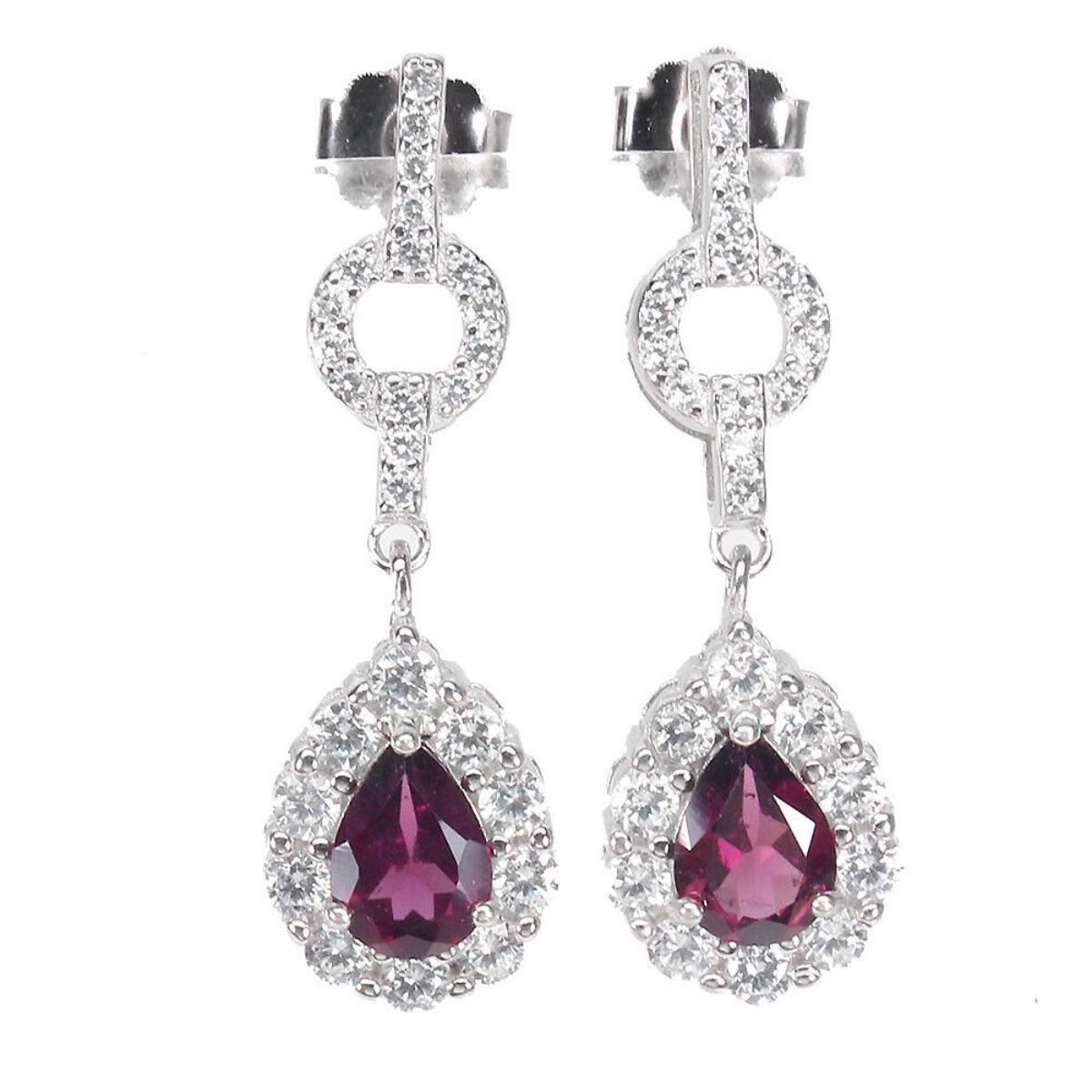 925 STERLING SILVER;PLATE-14K WHITE GOLD;MAIN STONE-RHODOLITE GARNET;TOTAL WEIGHT-4.11 GRAM (TOTAL WEIGHT OF SILVER + STONE);DIMENSION-* STONE 7.0 X 5.0 MM.* FACE EARRINGS 29.0 X 9.0 MM.;MAIN STONE SHAPE-PEAR ;MAIN STONE COLOR-PINK RASPBERRY;CLARITY/GRADE-IF TO VVS;TREATMENT-UNHEATED;ORIGIN-AFRICA;HARDNESS-7.0 - 7.5;
