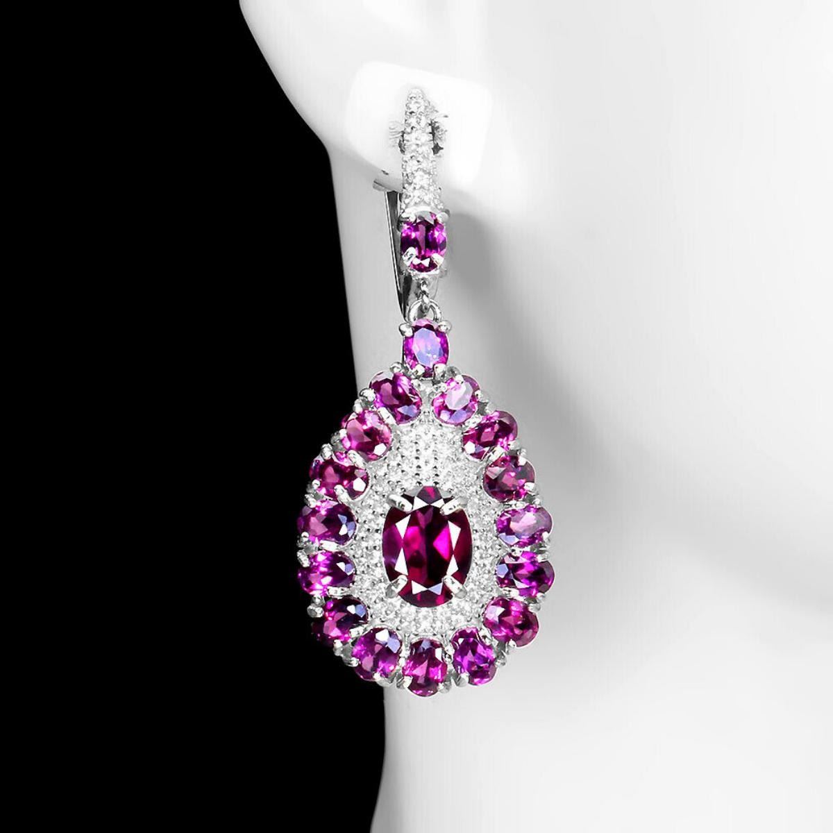 925 STERLING SILVER;PLATE-14K WHITE GOLD;MAIN STONE-RHODOLITE GARNET;TOTAL WEIGHT-8.68 GRAM (TOTAL WEIGHT OF SILVER + STONE);DIMENSION-* STONE 4.0 X 3.0 TO 8.0 X 6.0 MM.* FACE EARRINGS 41.0 X 17.0 MM.;MAIN STONE SHAPE-OVAL; MAIN STONE COLOR-PINK RASPBERRY;CLARITY/GRADE-IF TO VVS;TREATMENT-UNHEATED;ORIGIN-AFRICA;HARDNESS-7.0 - 7.5;