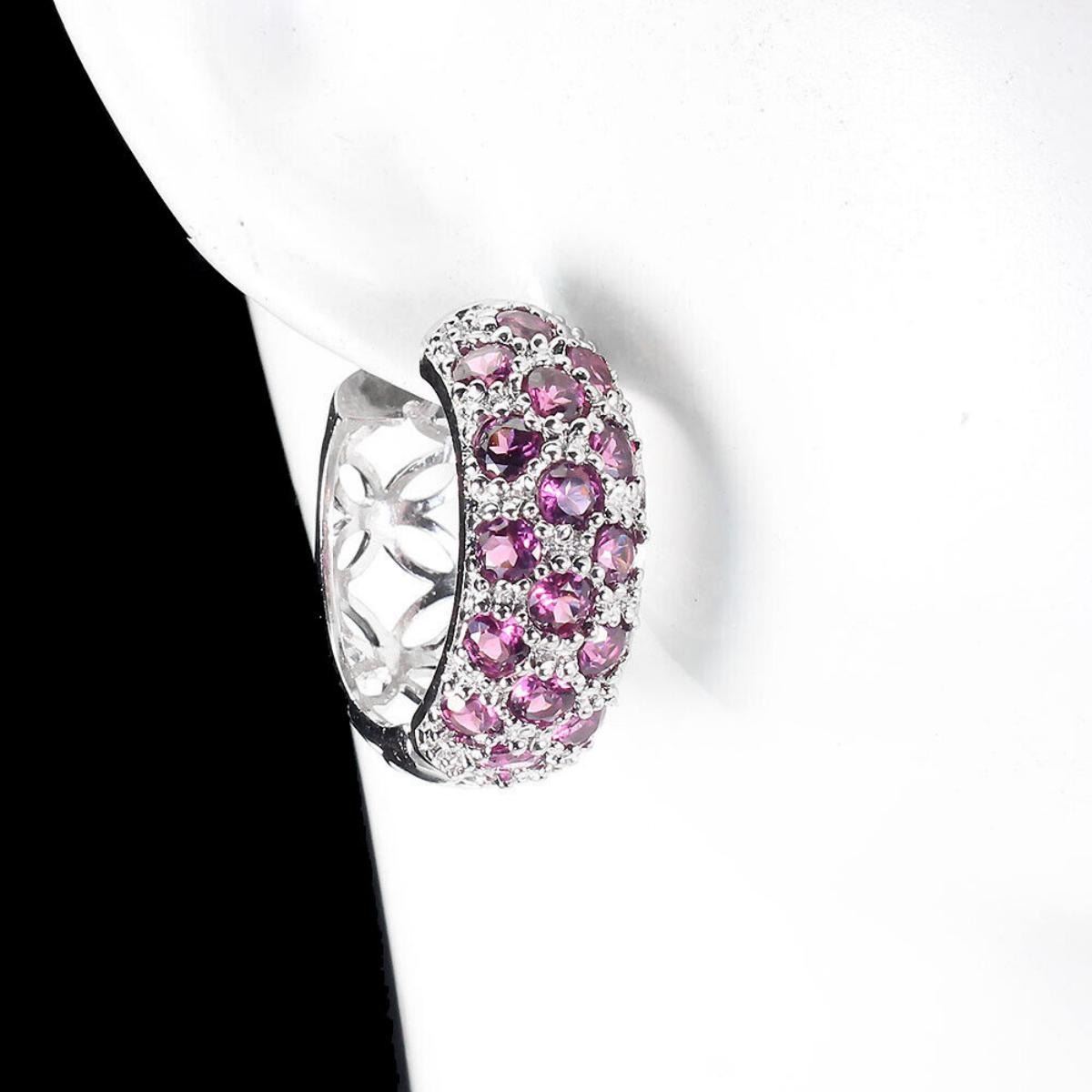 925 STERLING SILVER;PLATE-14K WHITE GOLD;MAIN STONE-RHODOLITE GARNET;TOTAL WEIGHT-10.75 GRAM (TOTAL WEIGHT OF SILVER + STONE);DIMENSION-* STONE 3.0 MM. * FACE EARRINGS 23.0 X 9.0 MM.;MAIN STONE SHAPE-ROUND; MAIN STONE COLOR-PINK RASPBERRY;CLARITY/GRADE-IF TO VVS;TREATMENT-UNHEATED;ORIGIN-AFRICA;HARDNESS-7.0 - 7.5;