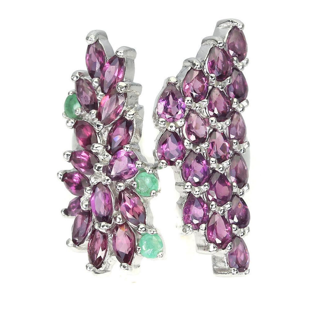 925 STERLING SILVER;PLATE-14K WHITE GOLD;RING SIZE-8(RESIZABLE);MAIN STONE-RHODOLITE GARNET;OTHER GEMS-EMERALD;TOTAL WEIGHT-8.67 GRAM (TOTAL WEIGHT OF SILVER + STONE);DIMENSION-* STONE 2.5 TO 4.0 X 3.0 MM. * RING SIZE 8.0 * FACE RING 28.0 X 21.0 MM.;MAIN STONE SHAPE-PEAR; MAIN STONE COLOR-PINK RASPBERRY;CLARITY/GRADE-IF TO VVS;TREATMENT-UNHEATED;ORIGIN-AFRICA;HARDNESS-7;
