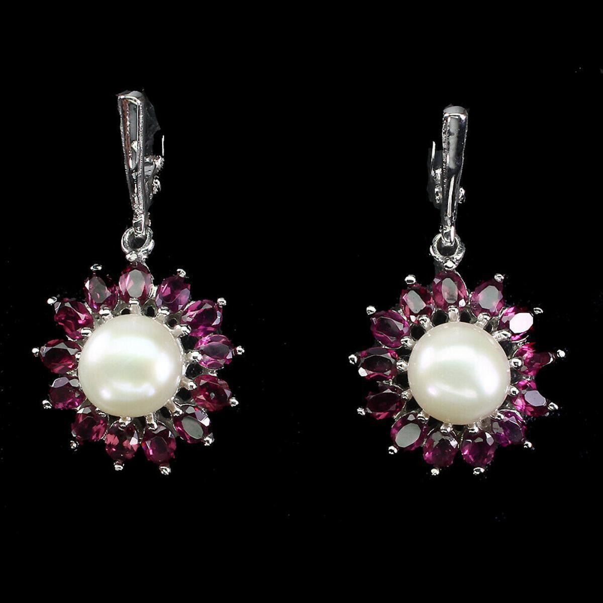 925 STERLING SILVER;PLATE-14K WHITE GOLD;MAIN STONE-RHODOLITE GARNET;OTHER GEMS-PEARL;TOTAL WEIGHT-8.66 GRAM (TOTAL WEIGHT OF SILVER + STONE)DIMENSION-* STONE 4.0 X 3.0 MM. * FACE EARRINGS 37.0 X 20.0 MM.MAIN STONE SHAPE-OVAL CUT;MAIN STONE COLOR-TOP RICH PINK RASPBERRY;TREATMENT-UNHEATED;ORIGIN-AFRICA;HARDNESS-2.5 - 7.5;