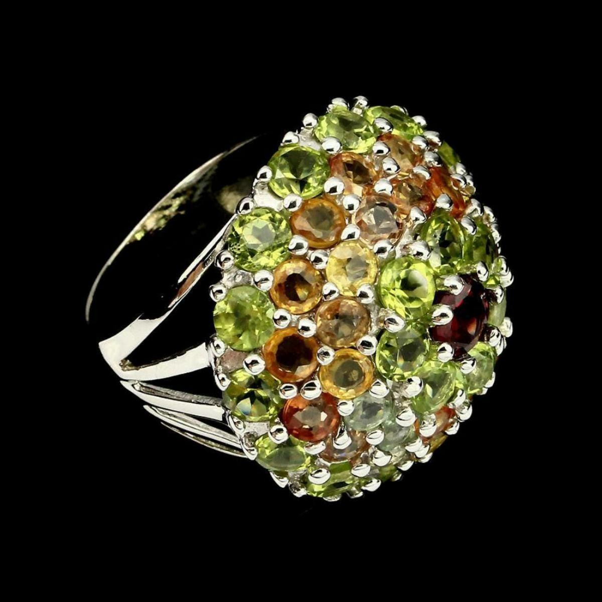 925 STERLING SILVER;PLATE14K WHITE GOLD;RING SIZE8.5(resizeable)MAIN STONERHODOLITE GARNET;OTHER GEMSPERIDOT,SAPPHIRE;TOTAL WEIGHT60.85 CT (TOTAL WEIGHT OF SILVER + STONE)DIMENSION* STONE 3.5 TO 5.0 MM. * RING SIZE 8.5 * FACE RING 25.0 X 24.0 MM.;MAIN STONE SHAPEROUND CUT;MAIN STONE COLORTOP RICH PINK RASPBERRY;CLARITY/GRADEIF TO VVS;LUSTERGORGEOUS;TREATMENTUNHEATED;ORIGINAFRICA;HARDNESS7.0 - 7.5;