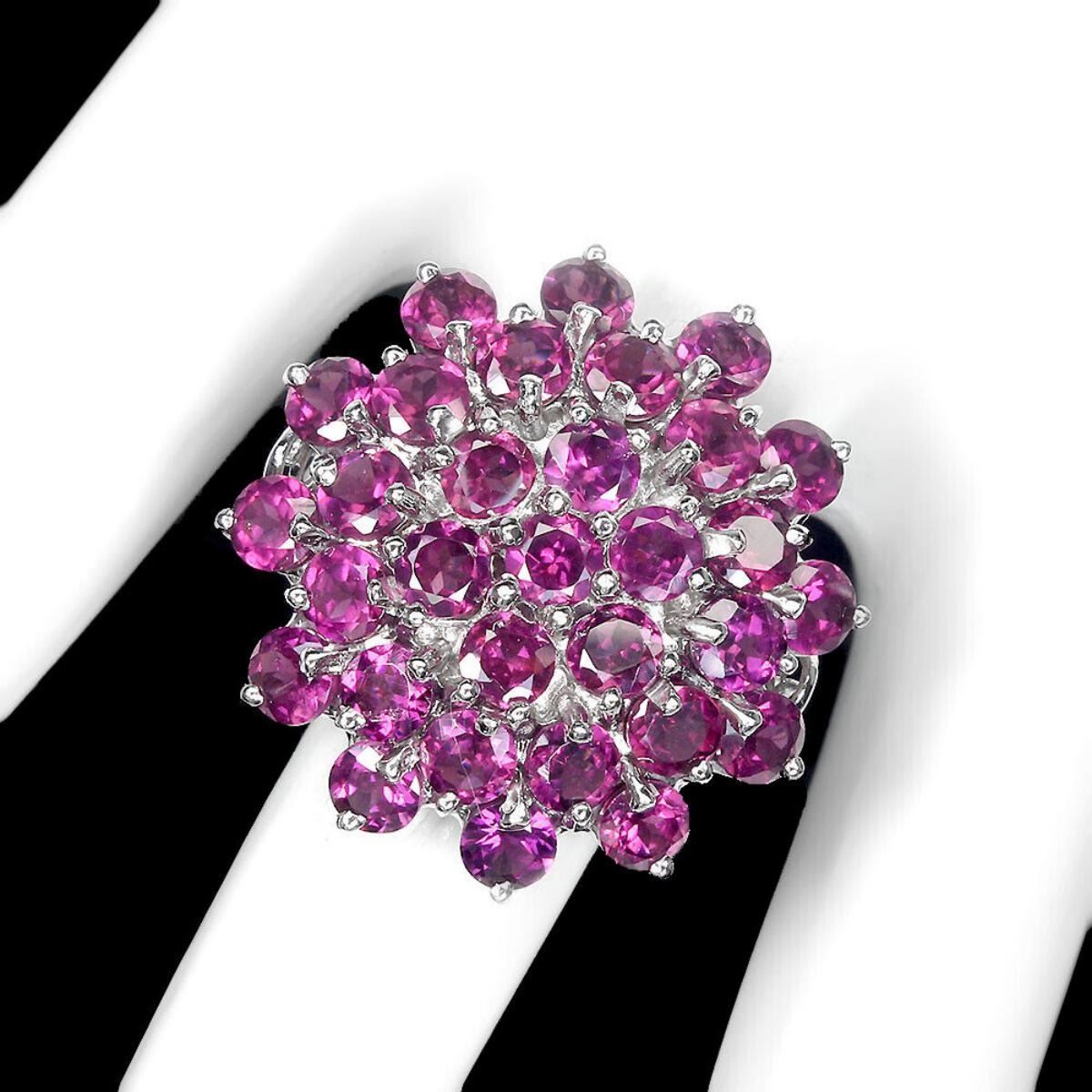 925 STERLING SILVER;PLATE-14K WHITE GOLD;RING SIZE-9(RESIZABLE);MAIN STONE-RHODOLITE GARNET;TOTAL WEIGHT-12.53 GRAM (TOTAL WEIGHT OF SILVER + STONE);DIMENSION-* STONE 4.0 MM.* RING SIZE 9.0* FACE RING 28.0 X 27.0 MM.;MAIN STONE SHAPE-ROUND; MAIN STONE COLOR-PINK RASPBERRY;CLARITY/GRADE-IF TO VVS;TREATMENT-UNHEATED;ORIGIN-AFRICA;HARDNESS-7.0 - 7.5;