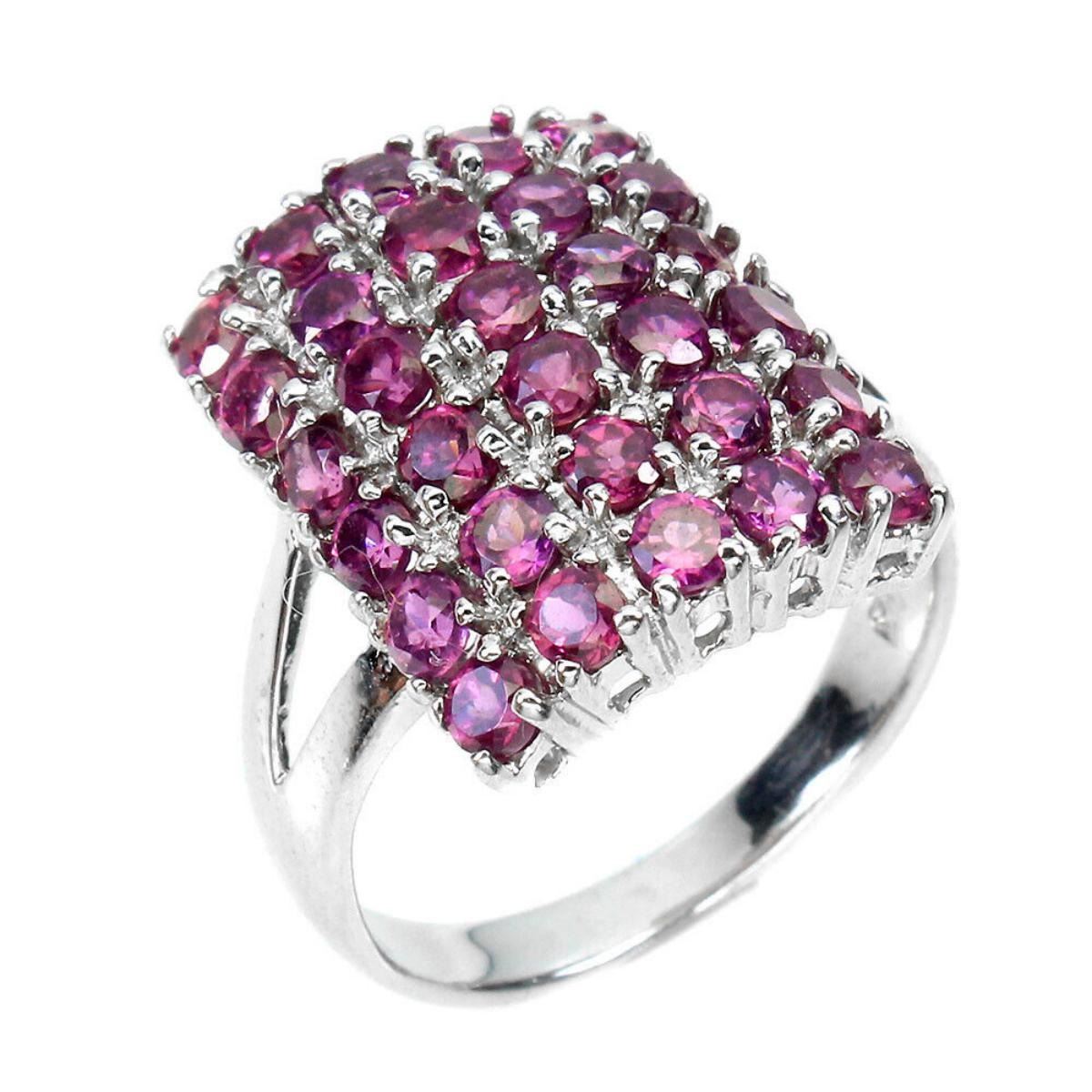 925 STERLING SILVER;PLATE-14K WHITE GOLD;RING SIZE-8;MAIN STONE-RHODOLITE GARNET;TOTAL WEIGHT-5.79 GRAM (TOTAL WEIGHT OF SILVER + STONE);DIMENSION-* STONE 2.5 MM.* RING SIZE 8.0* FACE RING 18.0 X 14.0 MM.;MAIN STONE SHAPE-ROUND; MAIN STONE COLOR-PINK RASPBERRY;CLARITY/GRADE-IF TO VVS;TREATMENT-UNHEATED;ORIGIN-AFRICA;HARDNESS-7.0 - 7.5;