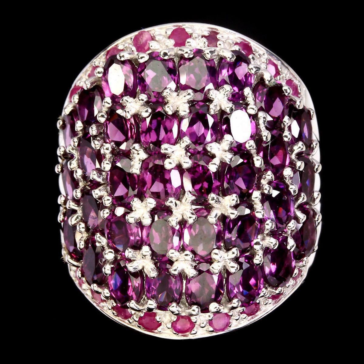 925 STERLING SILVER;PLATE14K WHITE GOLD;RING SIZE/7.5(resizable)MAIN STONERHODOLITE GARNET;OTHER GEMSRUBY;TOTAL WEIGHT49.28 CT (TOTAL WEIGHT OF SILVER + STONE)DIMENSION* STONE 1.0 TO 4.0 X 3.0 MM. * RING SIZE 7.5 * FACE RING 24.0 X 20.0 MM.;MAIN STONE SHAPEOVAL CUT;MAIN STONE COLORTOP RICH PINK RASPBERRY;CLARITY/GRADEIF TO VVS;LUSTERGORGEOUS;TREATMENTUNHEATED;ORIGINAFRICA;HARDNESS7.0 - 9.0;