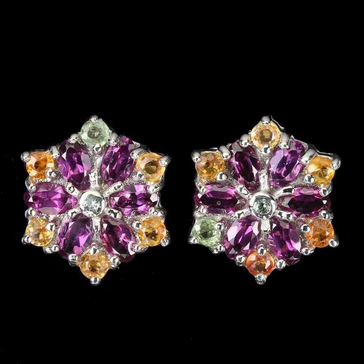 925 STERLING SILVER;PLATE-14K WHITE GOLD;MAIN STONE-RHODOLITE GARNET;OTHER GEMS-SAPPHIRE;TOTAL WEIGHT-7.02 GRAM (TOTAL WEIGHT OF SILVER + STONE)DIMENSION* STONE 1.0 TO 5.0 X 3.0 MM. * FACE EARRINGS 17.0 X 15.0 MM.MAIN STONE SHAPE-OVAL CUT;MAIN STONE COLOR-TOP RICH PINK RASPBERRY;CLARITY/GRADE-IF TO VVS;TREATMENT-UNHEATED;ORIGIN-AFRICAHARDNESS-7.0 - 7.5;