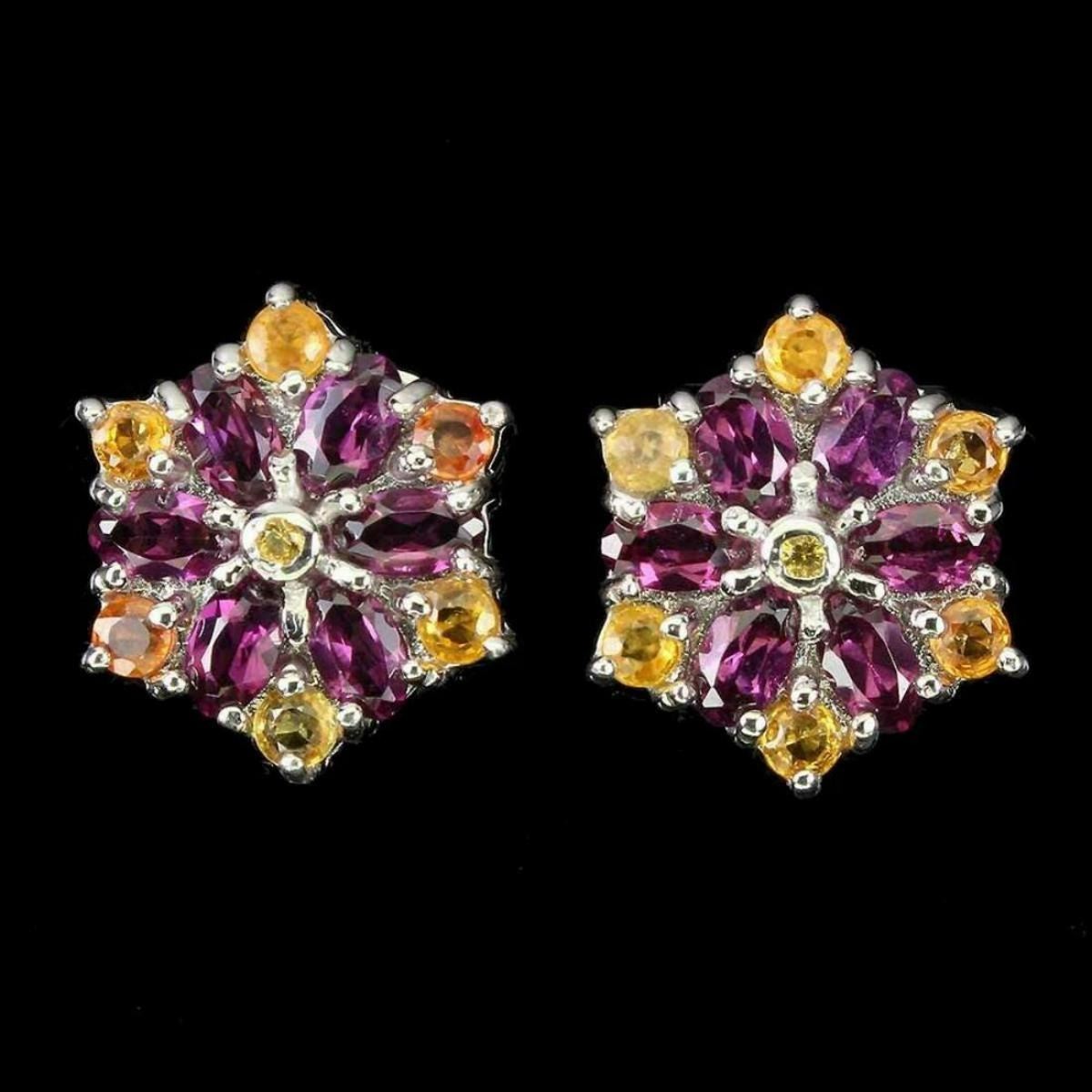 925 STERLING SILVER;PLATE-14K WHITE GOLD;MAIN STONE-RHODOLITE GARNET;OTHER GEMS-SAPPHIRE;TOTAL WEIGHT-7.13 GRAM (TOTAL WEIGHT OF SILVER + STONE)DIMENSION-* STONE 1.5 TO 5.0 X 3.0 MM. * FACE EARRINGS 17.0 X 15.0 MM.;MAIN STONE SHAPE-OVAL CUT;MAIN STONE COLOR-TOP RICH PINK RASPBERRY;CLARITY/GRADE-IF TO VVS;LUSTER-GORGEOUS;TREATMENT-UNHEATED;ORIGIN-AFRICA;HARDNESS-7.0 - 7.5;