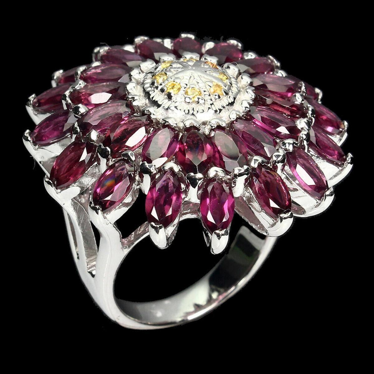 925 STERLING SILVER;PLATE-14K WHITE GOLD;RING SIZE(resizeable)7;MAIN STONE-RHODOLITE GARNET;OTHER GEMS-SAPPHIRE;TOTAL WEIGHT-15.05 GRAM (TOTAL WEIGHT OF SILVER + STONE)DIMENSION* STONE 1.5 TO 6.0 X 3.0 MM. * RING SIZE 7.0 * FACE RING 31.0 X 30.0 MM.;MAIN STONE SHAPE-MARQUISE CUT;MAIN STONE COLOR-TOP RICH PINK RASPBERRY;CLARITY/GRADE-IF TO VVS;TREATMENT-UNHEATED;ORIGIN-AFRICA;HARDNESS7.0 - 9.0;