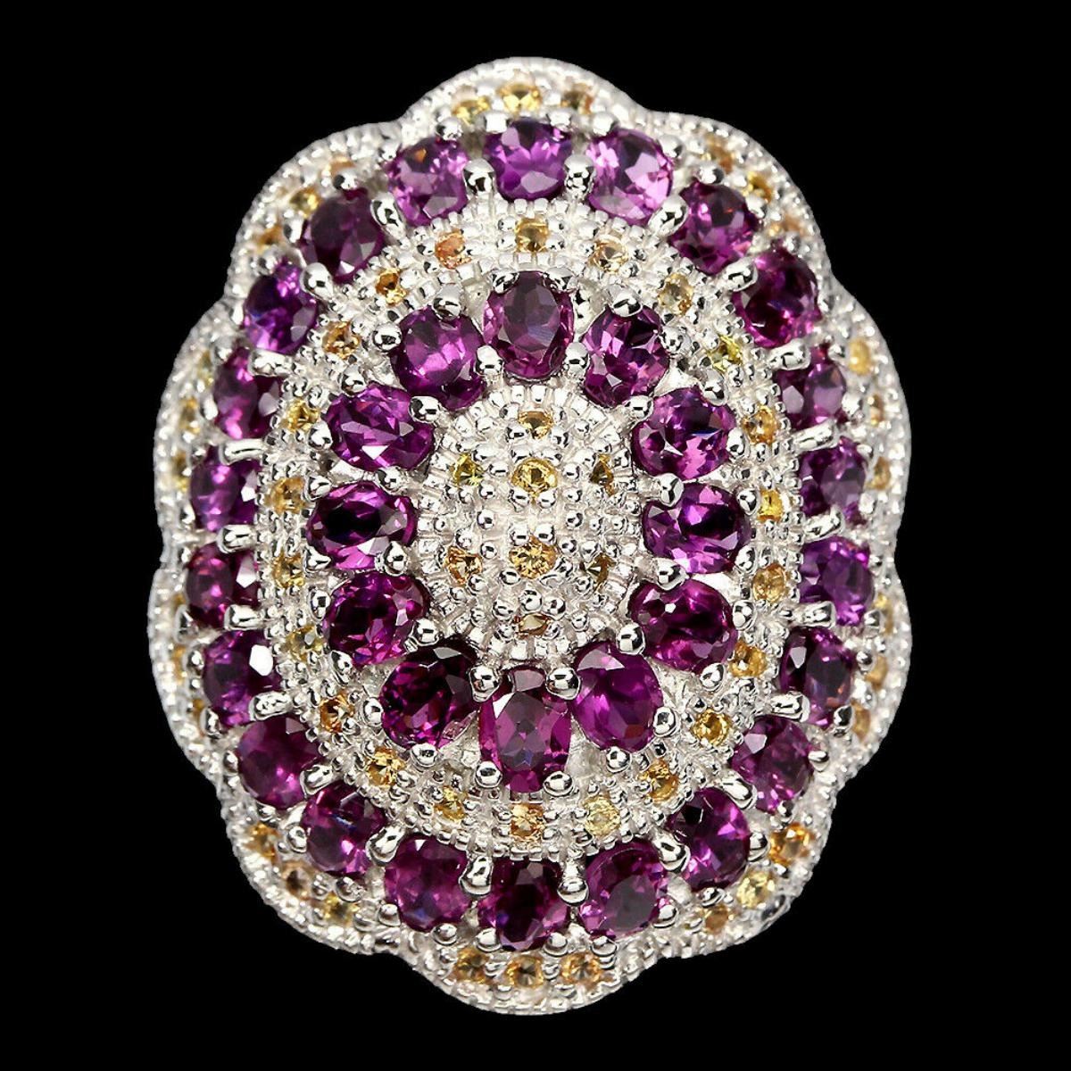 925 STERLING SILVER;PLATE-14K WHITE GOLD;RING SIZE/resizble-8.5;MAIN STONE-RHODOLITE GARNET;OTHER GEMS-SAPPHIRE;TOTAL WEIGHT-14.1 GRAM (TOTAL WEIGHT OF SILVER + STONE)DIMENSION-* STONE 1.5 TO 4.0 X 3.0 MM. * RING SIZE 8.5 * FACE RING 32.0 X 26.0 MM.;MAIN STONE SHAPE-OVAL CUT;MAIN STONE COLOR-TOP RICH PINK RASPBERRY;CLARITY/GRADE-IF TO VVS;LUSTER-DELIGHTFUL;TREATMENT-UNHEATED;ORIGIN-AFRICA;HARDNESS-7.0 - 7.5;