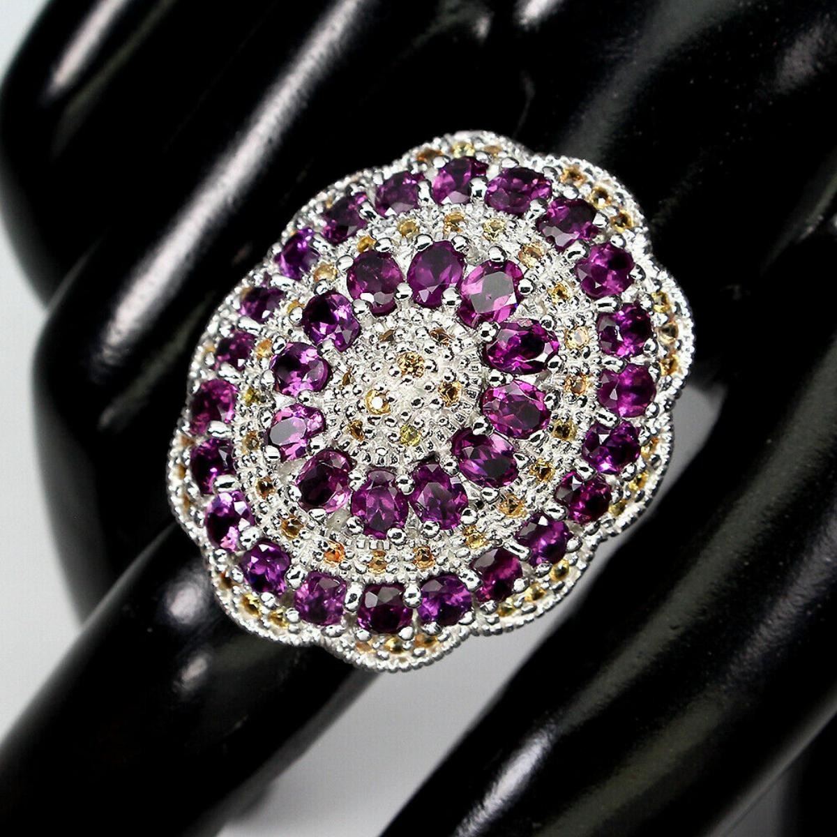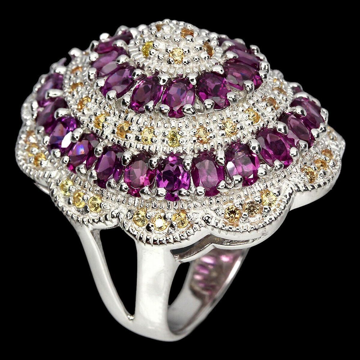 925 STERLING SILVER;PLATE-14K WHITE GOLD;RING SIZE/resizble-8.5;MAIN STONE-RHODOLITE GARNET;OTHER GEMS-SAPPHIRE;TOTAL WEIGHT-14.1 GRAM (TOTAL WEIGHT OF SILVER + STONE)DIMENSION-* STONE 1.5 TO 4.0 X 3.0 MM. * RING SIZE 8.5 * FACE RING 32.0 X 26.0 MM.;MAIN STONE SHAPE-OVAL CUT;MAIN STONE COLOR-TOP RICH PINK RASPBERRY;CLARITY/GRADE-IF TO VVS;LUSTER-DELIGHTFUL;TREATMENT-UNHEATED;ORIGIN-AFRICA;HARDNESS-7.0 - 7.5;