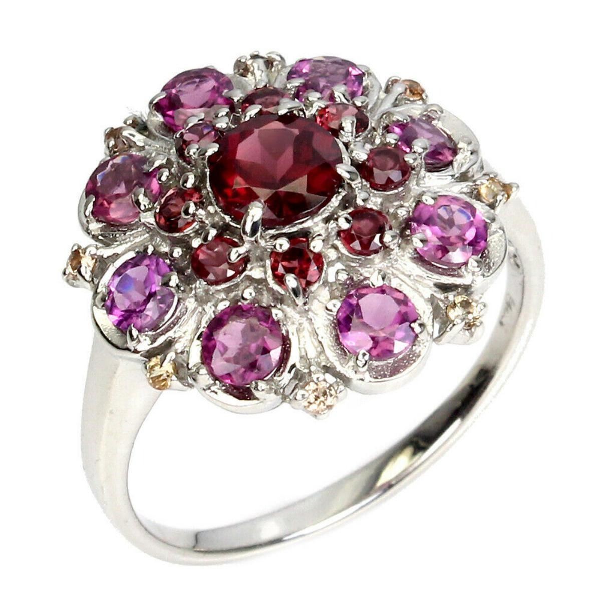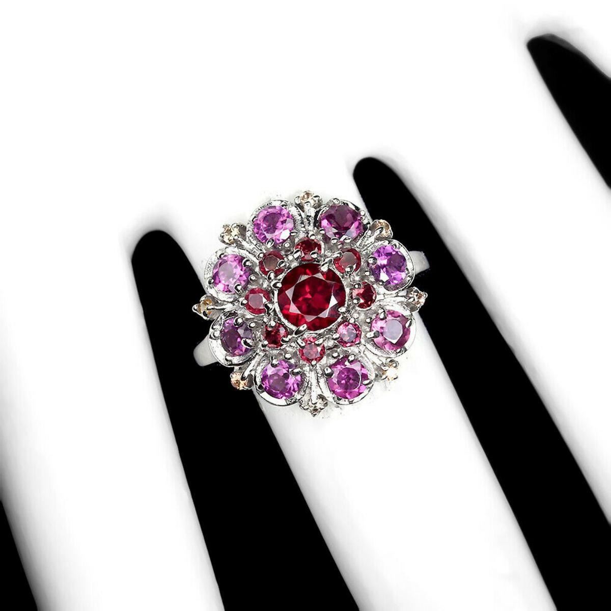925 STERLING SILVER;PLATE-14K WHITE GOLD;RING SIZE/resizeable-8;MAIN STONE-RHODOLITE GARNET;OTHER GEMS-SAPPHIRE ;TOTAL WEIGHT-3.39 GRAM (TOTAL WEIGHT OF SILVER + STONE)DIMENSION-* STONE 1.0 TO 5.0 MM. * RING SIZE 8.0 * FACE RING 17.0 X 17.0 MM.;MAIN STONE SHAPE-ROUND CUT;MAIN STONE COLOR-TOP RICH PINK RASPBERRY;CLARITY/GRADE-IF TO VVS;TREATMENT-UNHEATED;ORIGIN-AFRICA;