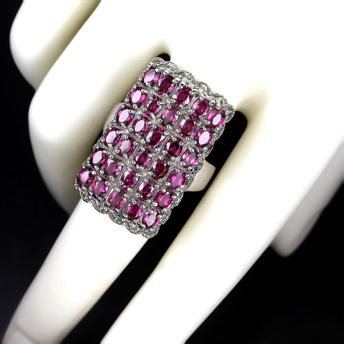 925 STERLING SILVER;PLATE-14K WHITE GOLD;RING SIZE-9(RESIZABLE);MAIN STONE-RHODOLITE GARNET;OTHER GEMS-SAPPHIRE;TOTAL WEIGHT-12.15 GRAM (TOTAL WEIGHT OF SILVER + STONE);DIMENSION-* STONE 1.5 TO 4.0 X 3.0 MM.* RING SIZE 9.0* FACE RING 31.0 X 19.0 MM.;MAIN STONE SHAPE-OVAL ;MAIN STONE COLOR- PINK RASPBERRY;CLARITY/GRADE-IF TO VVS;TREATMENT-UNHEATED;ORIGIN-AFRICA;HARDNESS-7.0 - 7.5;