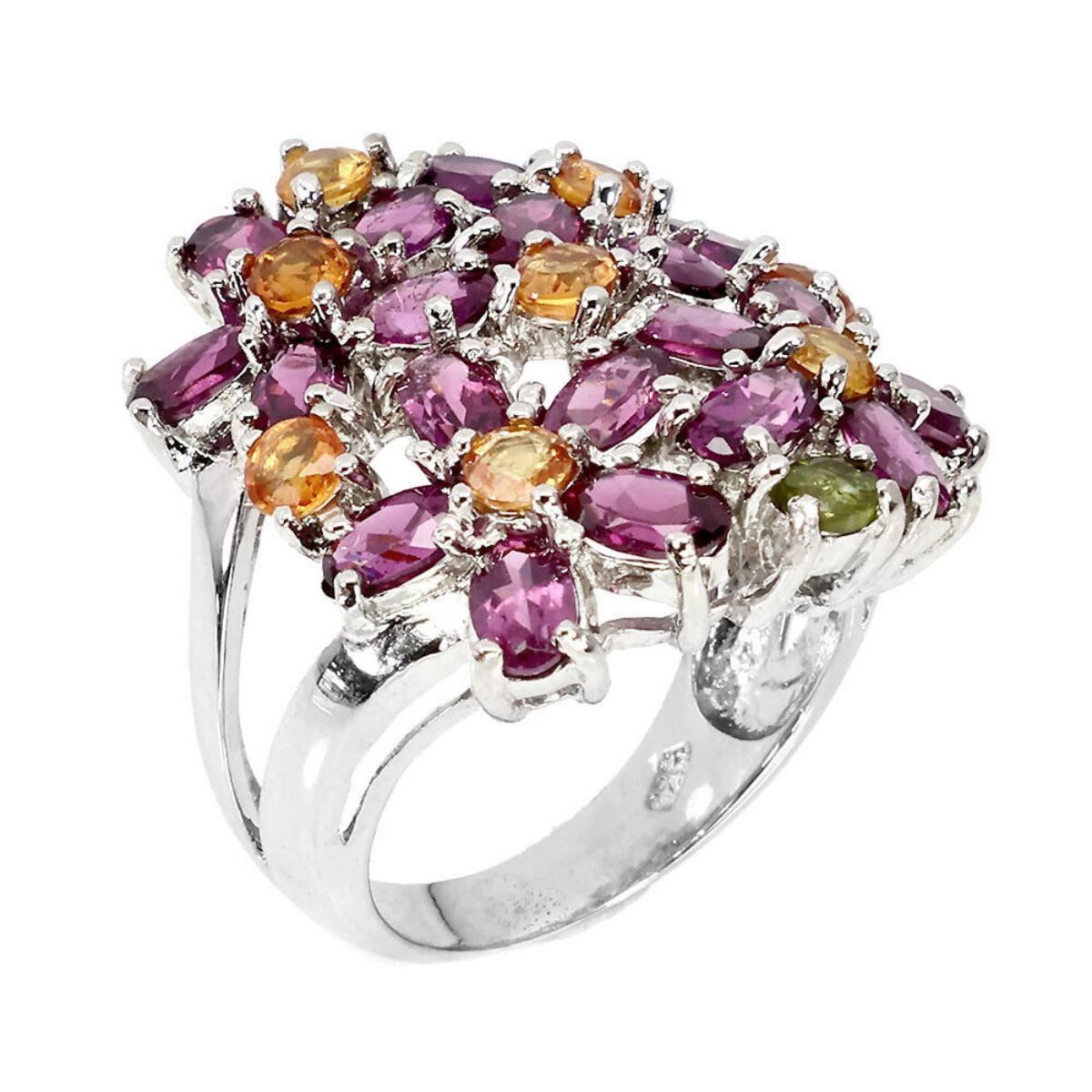 925 STERLING SILVER;PLATE-14K WHITE GOLD;RING SIZE/resizable-8.5;MAIN STONE-RHODOLITE GARNET;OTHER GEMS-SAPPHIRE;TOTAL WEIGHT-8.9 GRAM (TOTAL WEIGHT OF SILVER + STONE)DIMENSION-* STONE 3.5 TO 5.0 X 3.0 MM. * RING SIZE 8.5 * FACE RING -27.0 X 23.0 MM.;MAIN STONE SHAPE-OVAL CUT;MAIN STONE COLOR- PINK RASPBERRY;CLARITY/GRADE-IF TO VVS;TREATMENT-UNHEATED;ORIGIN-AFRICA;HARDNESS-7.0 - 7.5;
