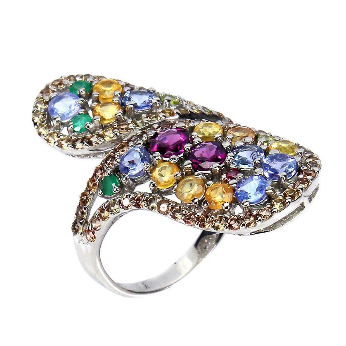 925 STERLING SILVER;PLATE-14K WHITE GOLD;RING SIZE/resizeable-8.5;MAIN STONE-RHODOLITE GARNET;OTHER GEMS-EMERALD, SAPPHIRE, TANZANITE;TOTAL WEIGHT-6.11 GRAM (TOTAL WEIGHT OF SILVER + STONE)DIMENSION-* STONE 1.5 TO 4.0 MM.;* RING SIZE- 8.5;* FACE RING -35.0 X 20.0 MM.;MAIN STONE SHAPE-ROUND CUT;MAIN STONE COLOR- PINK RASPBERRY;CLARITY/GRADE-IF TO VVS;TREATMENT-UNHEATED;ORIGIN-AFRICA;HARDNESS-7.0 - 7.5;