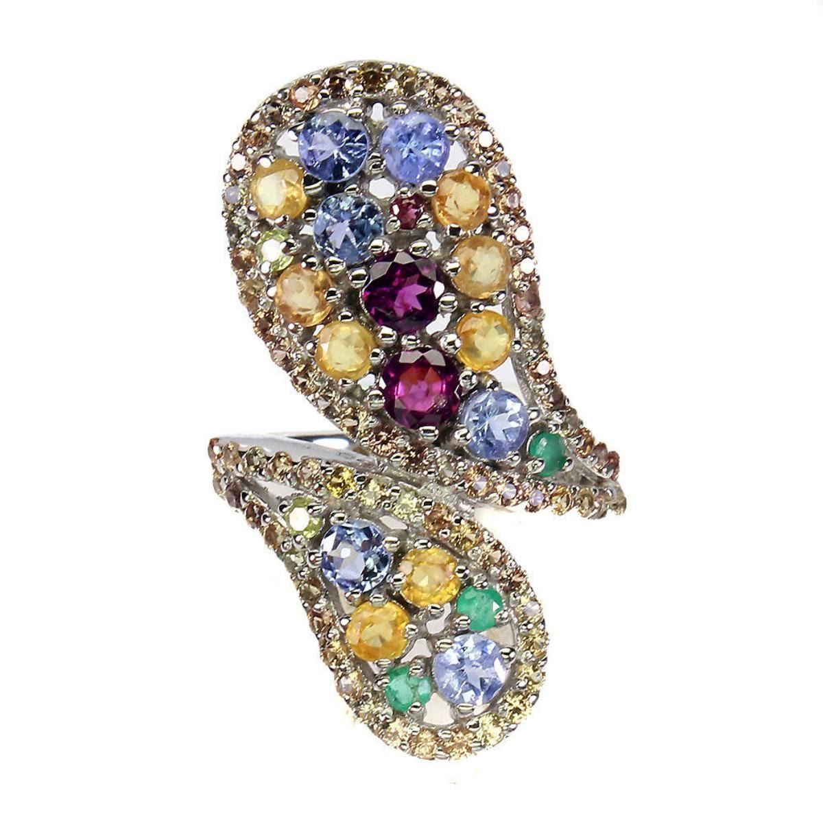 925 STERLING SILVER;PLATE-14K WHITE GOLD;RING SIZE/resizeable-8.5;MAIN STONE-RHODOLITE GARNET;OTHER GEMS-EMERALD, SAPPHIRE, TANZANITE;TOTAL WEIGHT-6.11 GRAM (TOTAL WEIGHT OF SILVER + STONE)DIMENSION-* STONE 1.5 TO 4.0 MM.;* RING SIZE- 8.5;* FACE RING -35.0 X 20.0 MM.;MAIN STONE SHAPE-ROUND CUT;MAIN STONE COLOR- PINK RASPBERRY;CLARITY/GRADE-IF TO VVS;TREATMENT-UNHEATED;ORIGIN-AFRICA;HARDNESS-7.0 - 7.5;