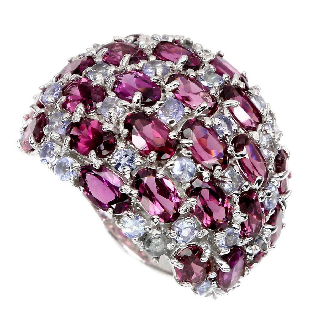 925 STERLING SILVER;PLATE-14K WHITE GOLD;RING SIZE-8(resizeable)MAIN STONE-RHODOLITE GARNET;OTHER GEMS-TANZANITE;TOTAL WEIGHT-8 GRAM (TOTAL WEIGHT OF SILVER + STONE)DIMENSION-* STONE 1.8 TO 5.0 X 3.0 MM. * RING SIZE 8.0 * FACE RING 25.0 X 19.0 MM.;MAIN STONE SHAPE-OVAL CUT;MAIN STONE COLOR-TOP RICH PINK RASPBERRY;CLARITY/GRADE-IF TO VVS;LUSTER-GORGEOUS;TREATMENT-UNHEATED;ORIGIN-AFRICA;HARDNESS-7.0 - 7.5;