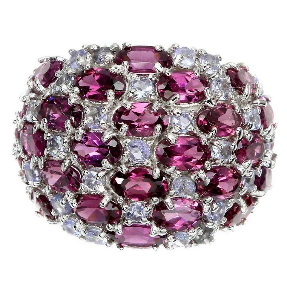 925 STERLING SILVER;PLATE-14K WHITE GOLD;RING SIZE-8(resizeable)MAIN STONE-RHODOLITE GARNET;OTHER GEMS-TANZANITE;TOTAL WEIGHT-8 GRAM (TOTAL WEIGHT OF SILVER + STONE)DIMENSION-* STONE 1.8 TO 5.0 X 3.0 MM. * RING SIZE 8.0 * FACE RING 25.0 X 19.0 MM.;MAIN STONE SHAPE-OVAL CUT;MAIN STONE COLOR-TOP RICH PINK RASPBERRY;CLARITY/GRADE-IF TO VVS;LUSTER-GORGEOUS;TREATMENT-UNHEATED;ORIGIN-AFRICA;HARDNESS-7.0 - 7.5;