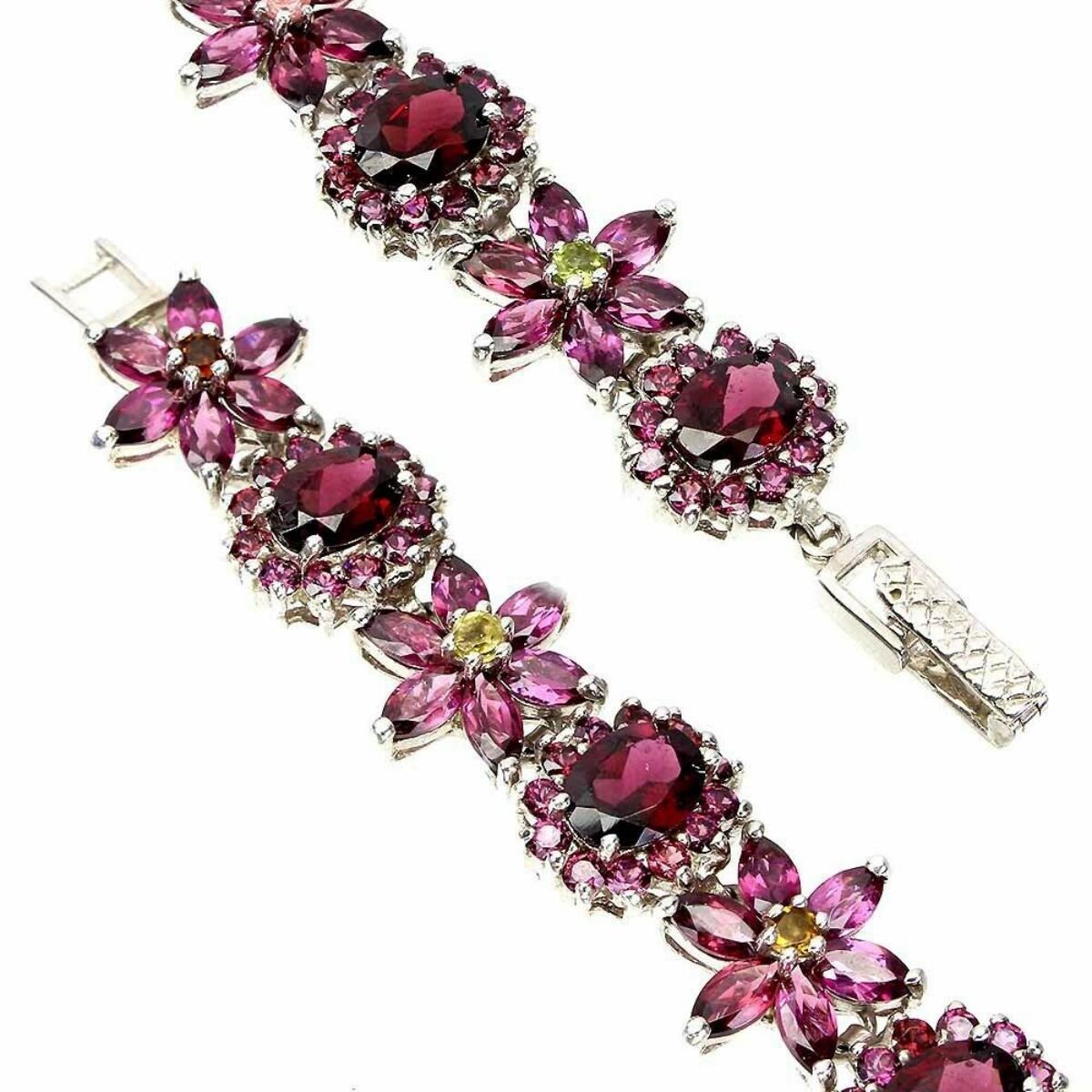 925 STERLING SILVER;PLATE-14K WHITE GOLD;LENGTH (INCHES)-7;MAIN STONE-RHODOLITE GARNET;OTHER GEMS-TOURMALINE;TOTAL WEIGHT-25.27 GRAM (TOTAL WEIGHT OF SILVER + STONE)DIMENSION-* STONE 2.0 TO 8.0 X 6.0 MM. * FACE BRACELET 160.0 X 12.0 MM.;MAIN STONE SHAPE-OVAL CUT;MAIN STONE COLOR-TOP RICH PINK RASPBERRY;CLARITY/GRADE-IF TO VVS;TREATMENT-UNHEATED;ORIGIN-AFRICA;HARDNESS-7.0 - 7.5;