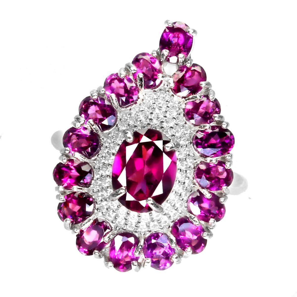 925 STERLING SILVER;PLATE-14K WHITE GOLD;RING SIZE-8(RESIZABLE);MAIN STONE-RHODOLITE GARNET;TOTAL WEIGHT-5.54 GRAM (TOTAL WEIGHT OF SILVER + STONE);DIMENSION-* STONE 4.0 X 3.0 TO 8.0 X 6.0 MM.* RING SIZE 8.0* FACE RING 24.0 X 17.0 MM.;MAIN STONE SHAPE-OVAL; MAIN STONE COLOR - PINK RASPBERRY;CLARITY/GRADE-IF TO VVS;TREATMENT-UNHEATED;ORIGIN-AFRICA;HARDNESS-7.0 - 7.5;