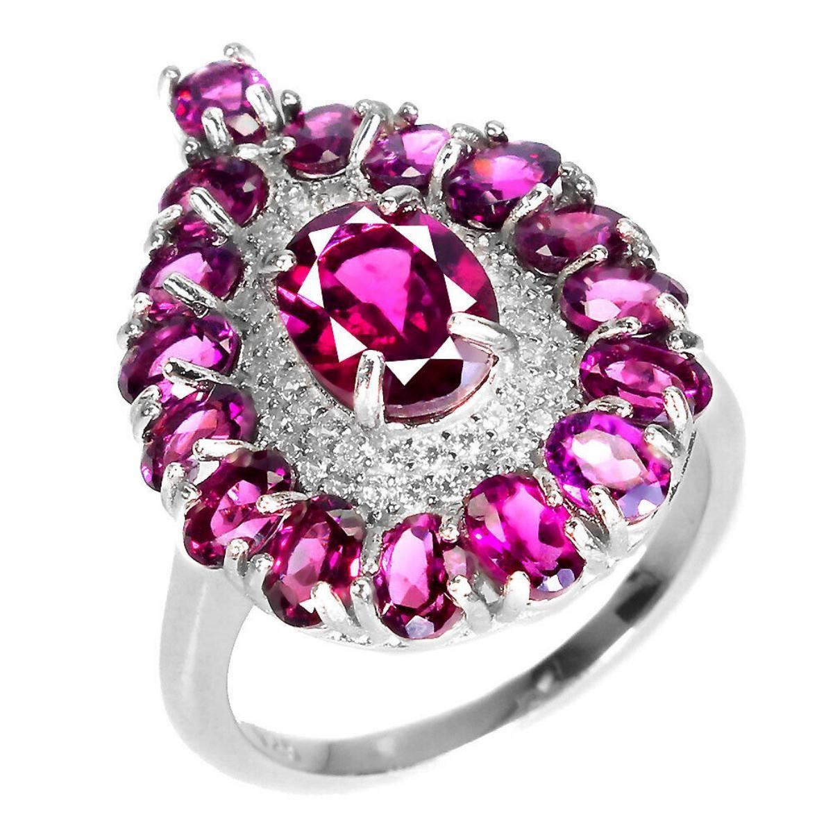 925 STERLING SILVER;PLATE-14K WHITE GOLD;RING SIZE-8(RESIZABLE);MAIN STONE-RHODOLITE GARNET;TOTAL WEIGHT-5.54 GRAM (TOTAL WEIGHT OF SILVER + STONE);DIMENSION-* STONE 4.0 X 3.0 TO 8.0 X 6.0 MM.* RING SIZE 8.0* FACE RING 24.0 X 17.0 MM.;MAIN STONE SHAPE-OVAL; MAIN STONE COLOR - PINK RASPBERRY;CLARITY/GRADE-IF TO VVS;TREATMENT-UNHEATED;ORIGIN-AFRICA;HARDNESS-7.0 - 7.5;