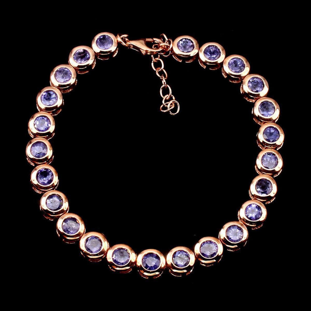 925 STERLING SILVERPLATE14K ROSE GOLDRING SIZE/LENGTH (INCHES)8.5MAIN STONETANZANITEOTHER GEMSTOTAL WEIGHT86.35 CT (TOTAL WEIGHT OF SILVER + STONE)DIMENSION* STONE 5.0 MM. * FACE BRACELET 173.0 X 6.0 MM.MAIN STONE SHAPEROUND DIAMOND CUTMAIN STONE COLORTOP RICH BLUE VIOLETCLARITY/GRADETRANSPARENTLUSTERATTRACTIVETREATMENTUNHEATEDORIGINTANZANIA - AFRICAHARDNESS7.0 - 7.5