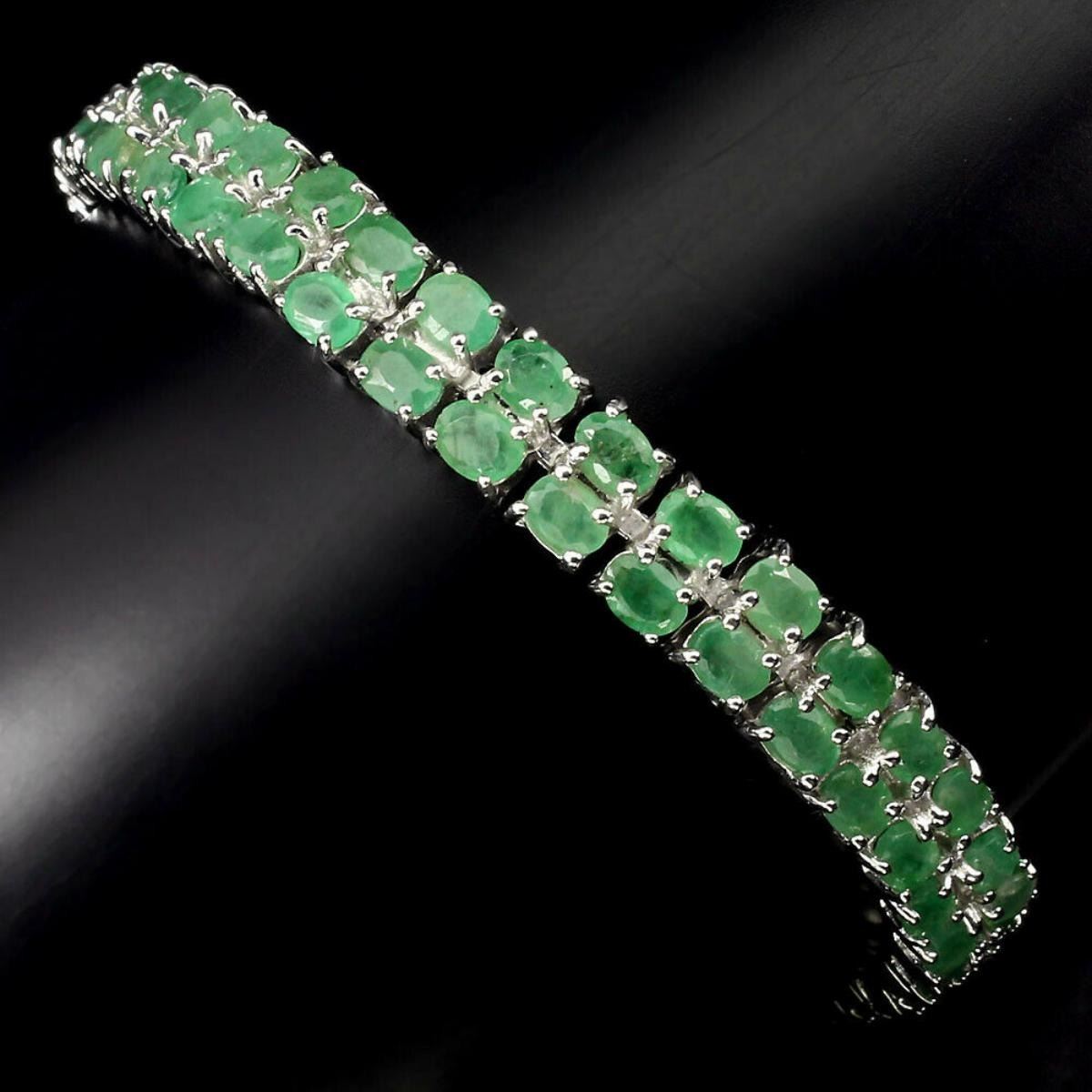 925 STERLING SILVER;PLATE....14K WHITE GOLD;LENGTH (INCHES)8;MAIN STONE...EMERALD;OTHER GEMSTOTAL WEIGHT....98.27 CT (TOTAL WEIGHT OF SILVER + STONE)DIMENSION* STONE 4.0 X 3.0 MM. * FACE BRACELET 180.0 X 7.0 MM.;MAIN STONE SHAPEOVAL CUT;MAIN STONE COLORTOP RICH GREEN;TREATMENT-UNHEATED;ORIGIN-BRAZIL;HARDNESS7.5 - 8.0;