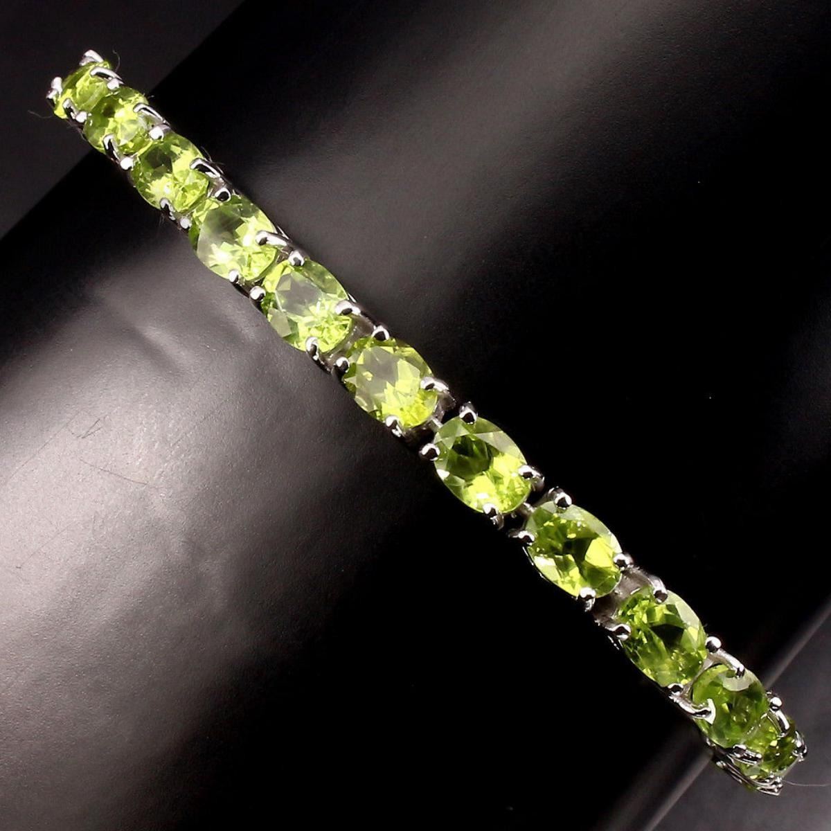 925 STERLING SILVER;PLATE14K WHITE GOLD;LENGTH (INCHES)9.5;MAIN STONEPERIDOT;TOTAL WEIGHT69.06 CT (TOTAL WEIGHT OF SILVER + STONE)DIMENSION* STONE 7X5 MM. * FACE BRACELET 170.0 X 5.0 MM.MAIN STONE SHAPEOVAL CUTMAIN STONE COLORTOP RICH GREENCLARITY/GRADEIF TO VVS;LUSTERPRECIOUS;TREATMENTUNHEATED;ORIGINPAKISTAN;HARDNESS6.5 - 7.0