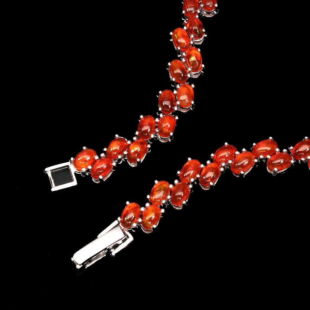 925 STERLING SILVER;PLATE.....14K WHITE GOLD;LENGTH (INCHES)7.5;MAIN STONEORANGE FIRE OPAL;TOTAL WEIGHT64.84 CT (TOTAL WEIGHT OF SILVER + STONE)DIMENSION* STONE 5.0 X 3.0 MM. * FACE BRACELET 180.0 X 8.0 MM.MAIN STONE SHAPEOVAL CABOCHONMAIN STONE COLORTOP RICH ORANGECLARITY/GRADETRANSPARENTLUSTERMESMERIZINGTREATMENTHEATED TREATEDORIGINETHIOPIAHARDNESS5.5 - 6.5